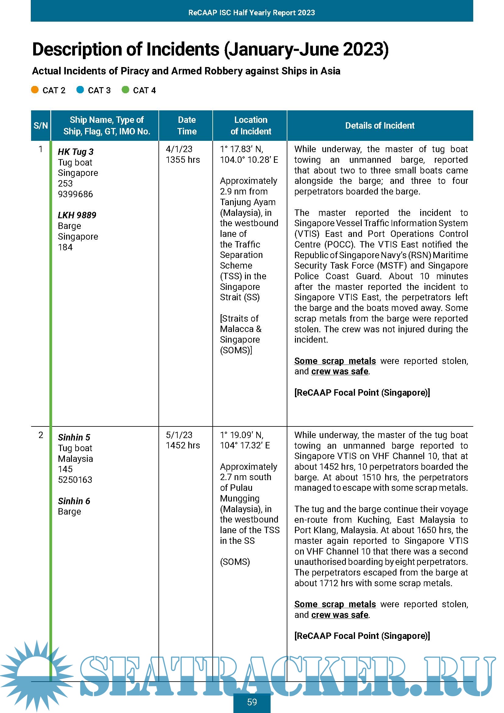 ReCAAP ISC Half Yearly Report | Piracy and Armed robbery against ships in Asia