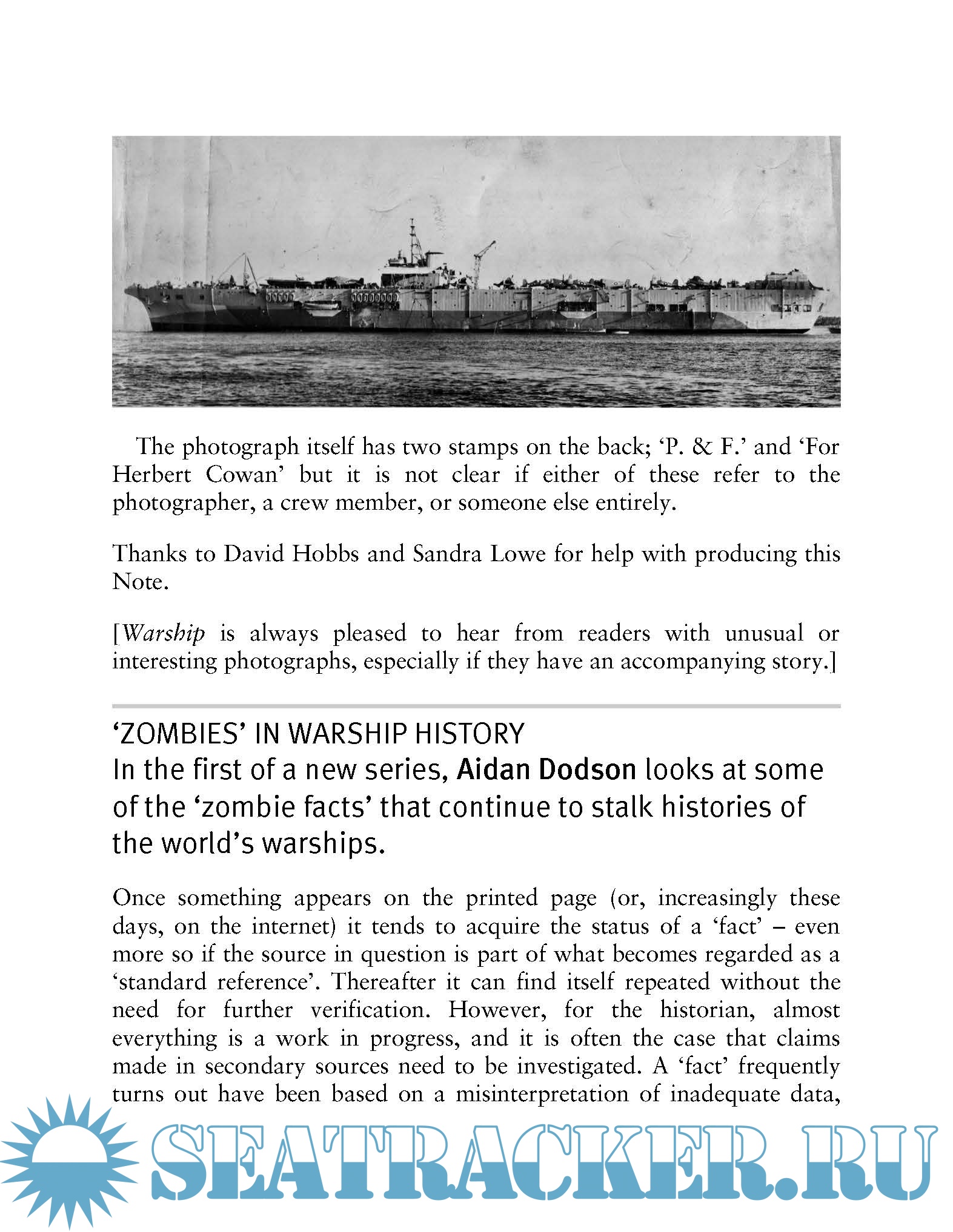 This year's Warship includes features on the secret battleship design that Mussolini's Fascist Italy sold to Stalin's USSR, the little-known German flak ships of World War II, the French aircraft carriers Clemenceau and Foch, and the development of electronic warfare in the Royal Navy.