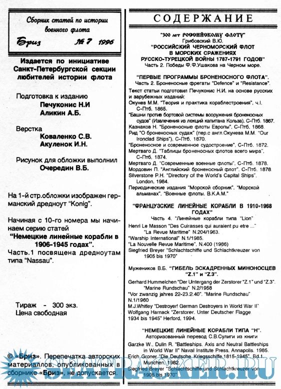 Год выпуска: 1996 Язык: русский Автор: Печуконис Н.И., Аликин А.Б.(редакторы) Жанр: Периодическое издание (журнал) Издание: 1996-01 Формат: PDF Качество: Отсканированные страницы Количество страниц: 48 Описание: Сборник статей по истории флота