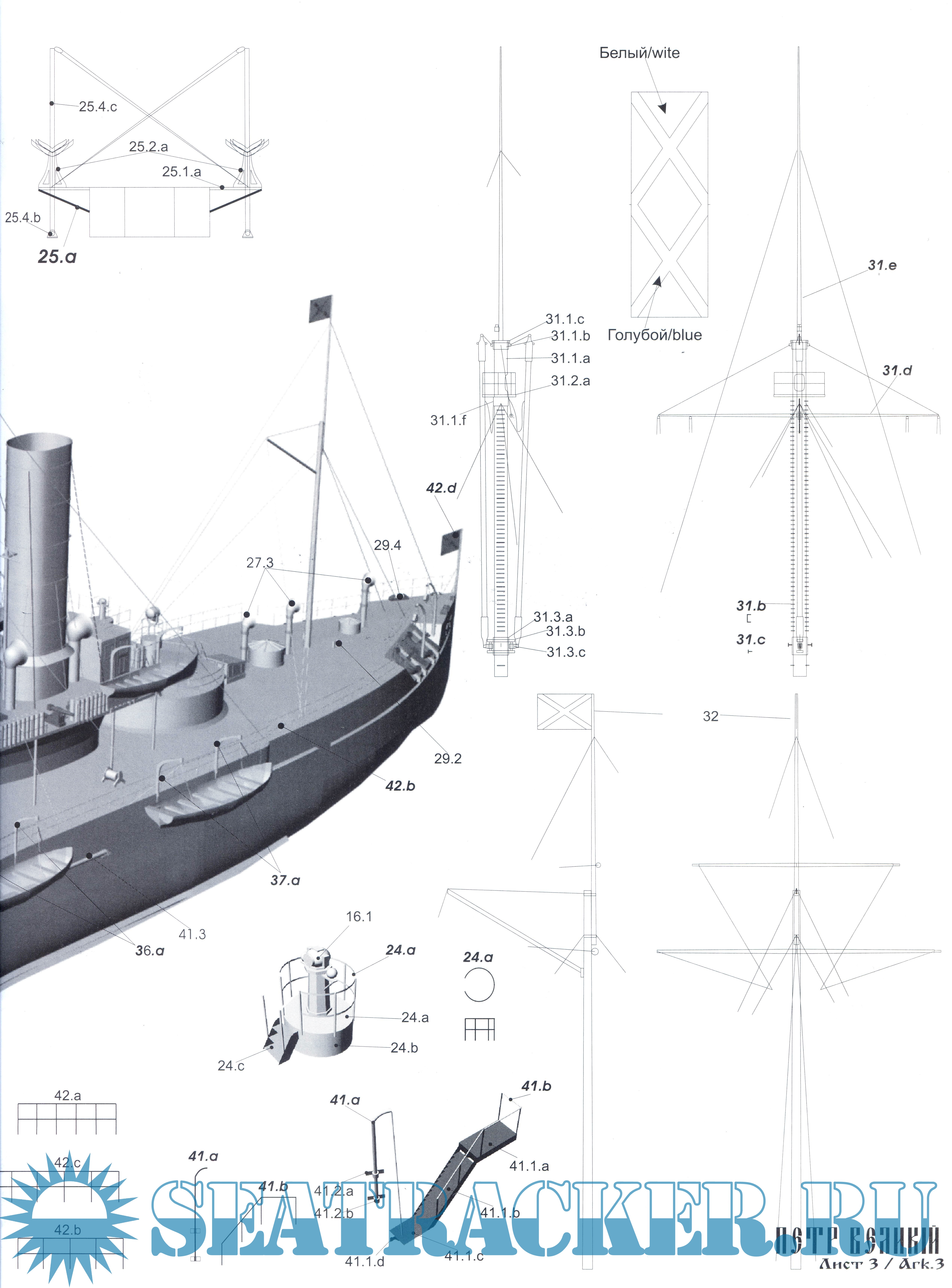 Описание: 46 листов цветных выкроек и инструкций для изготовления бумажной модели броненосца "Петр Великий" Россия 1881 год в масштабе 1:200