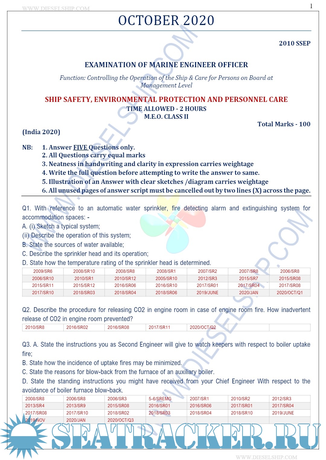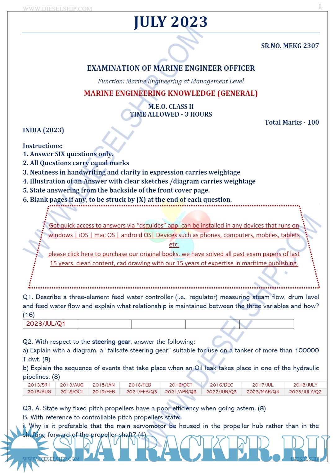 Description: M.E.O. Class II Question Paper set for Mercantile Marine Department (MMD), D.G. Shipping India Exams.