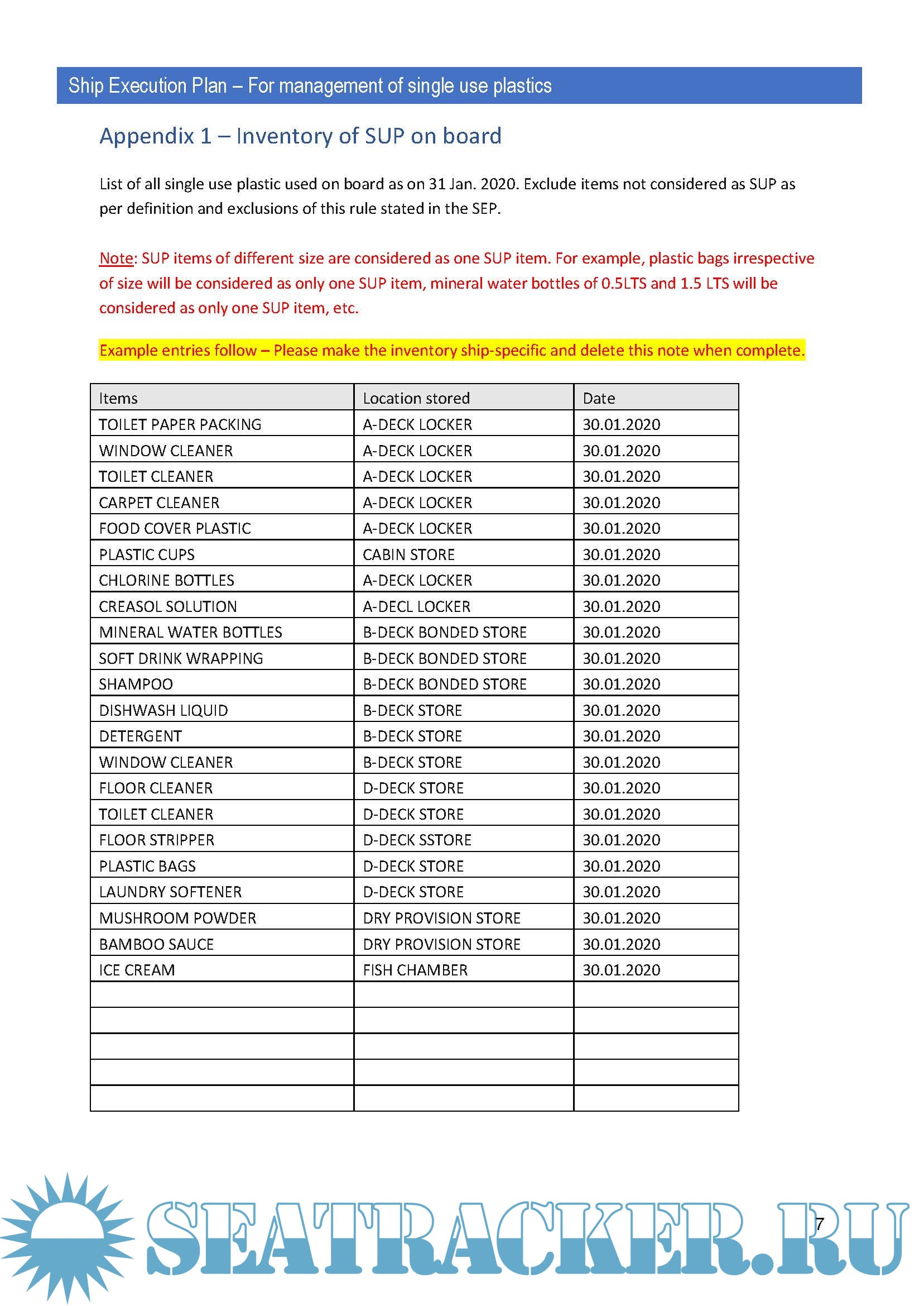 Year: 202x Language: english Author: Unknown Genre: Documentation Format: DOC Quality: eBook Pages count: 11 Description: Ship's Execution Plan for single use plastics Shipping Company template [model].