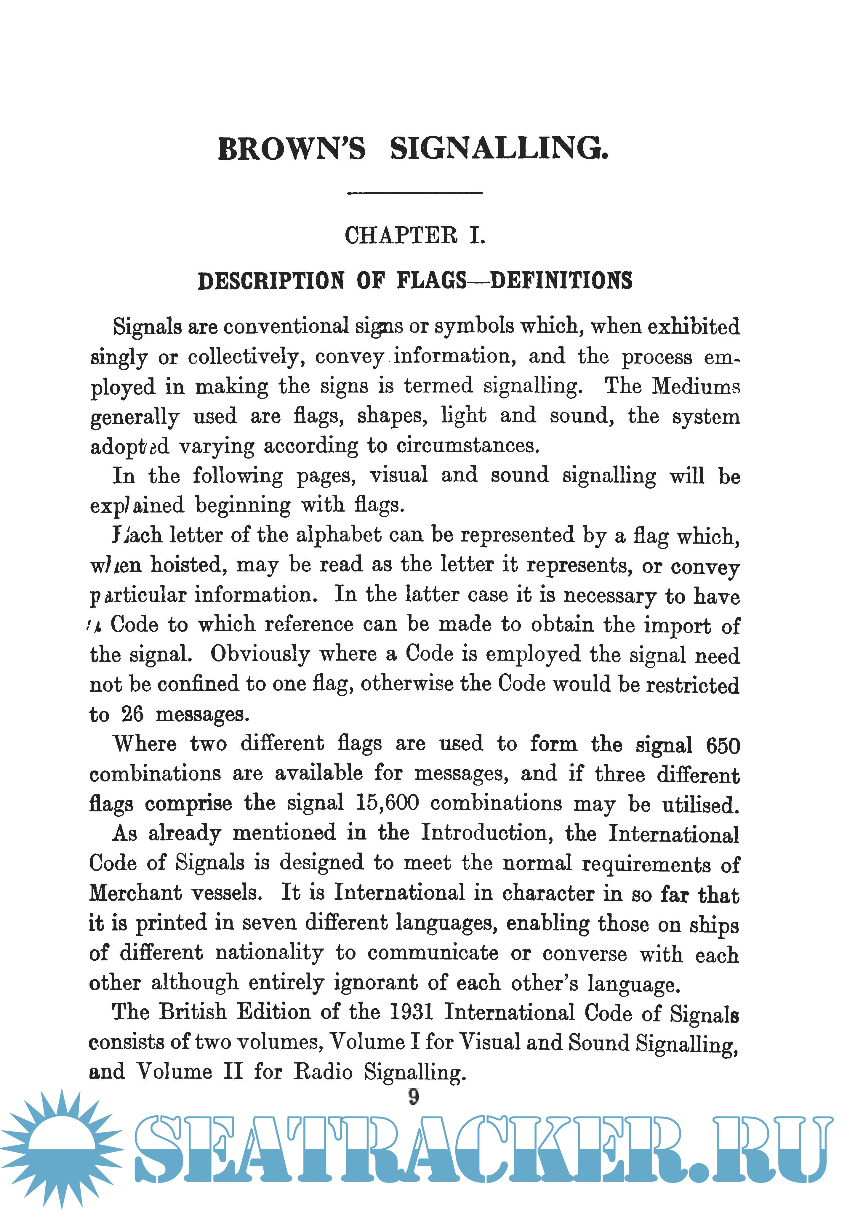 Brown’s Signalling contains all the instructions relative to visual and sound signalling, and it has been compiled in such a manner that it provides a progressive course of study for those who desire to acquire proficiency in modern signalling, the subjects being arranged in the order best suited for that purpose.