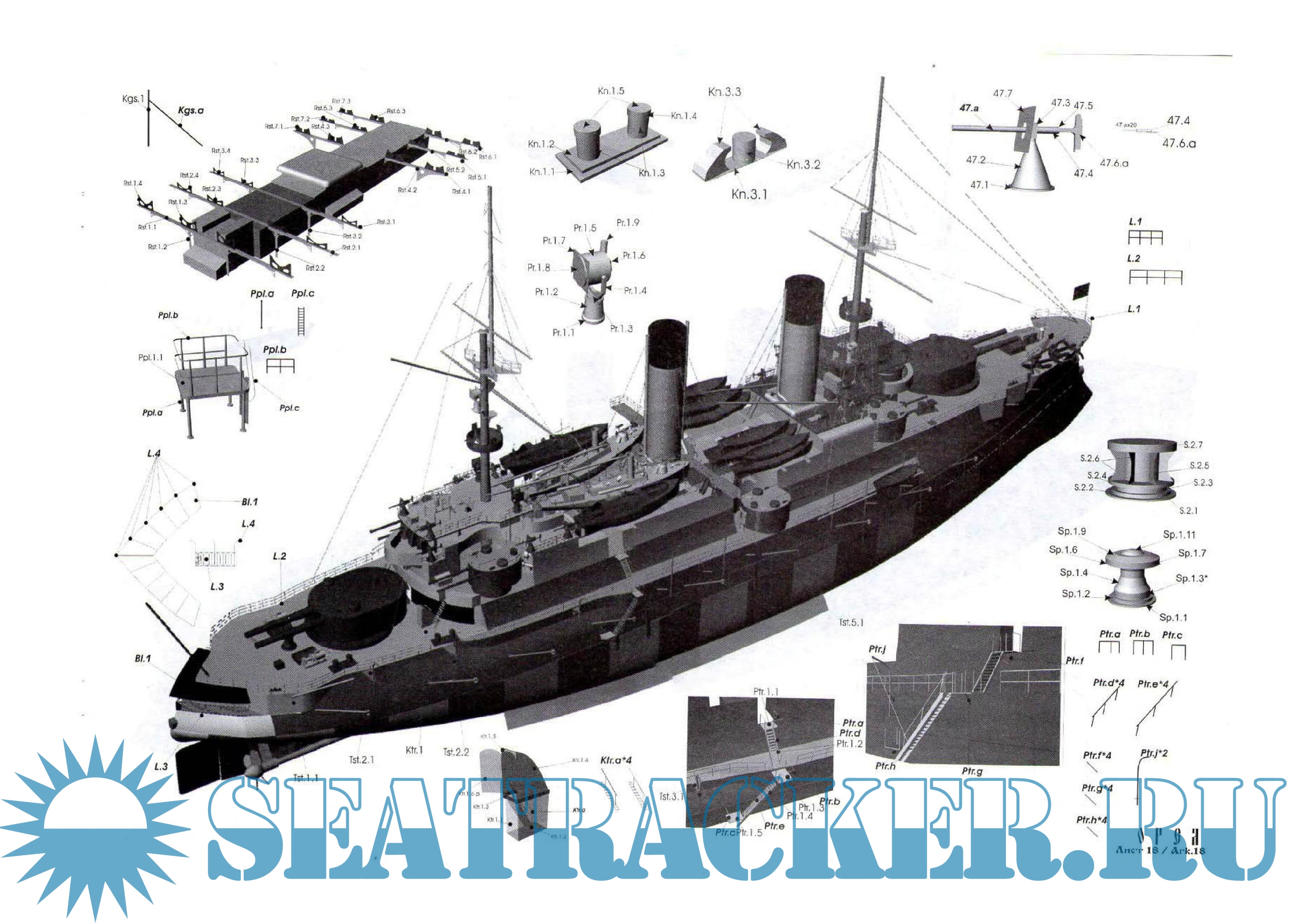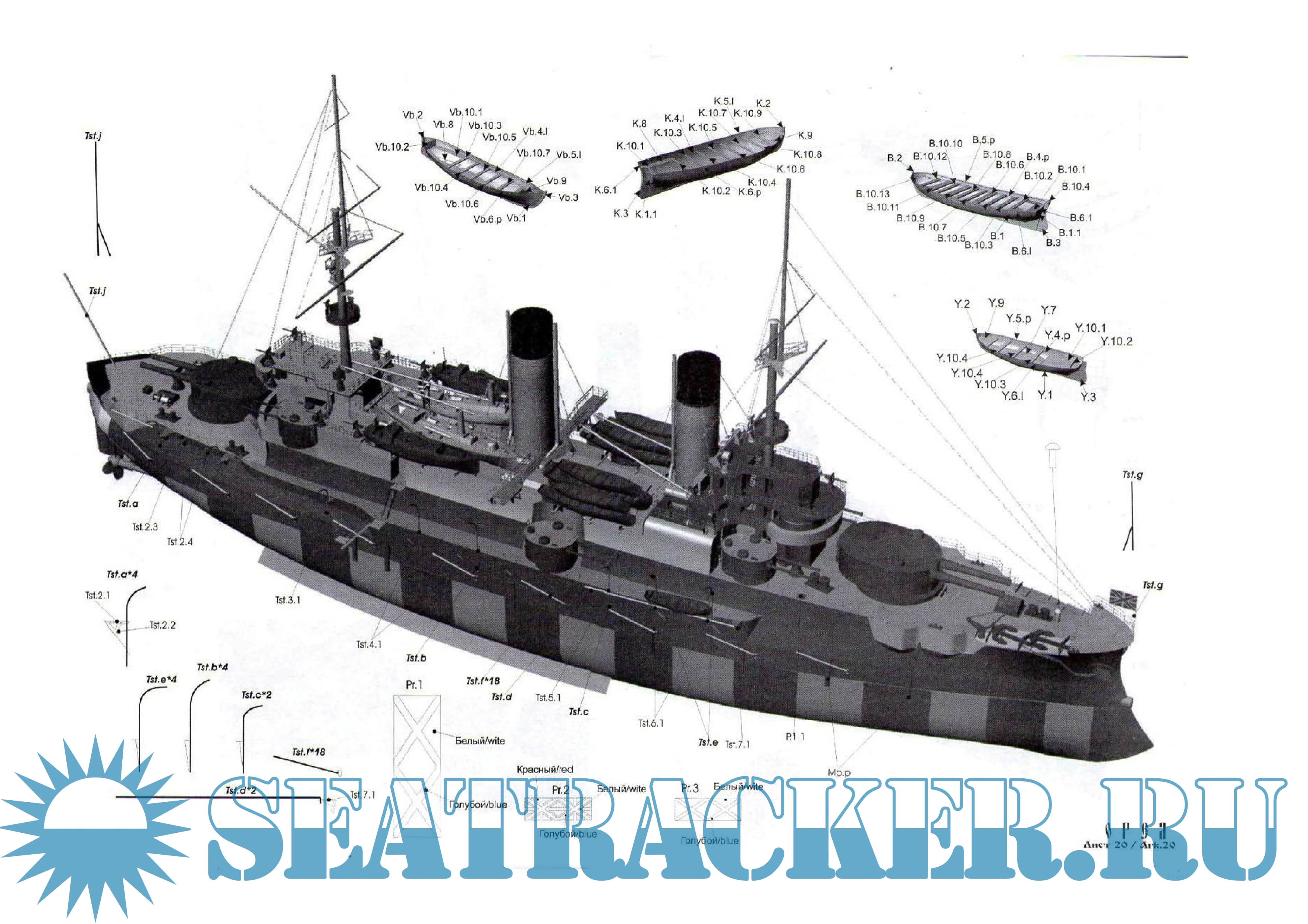 20 листов цветных выкроек и инструкций для изготовления бумажной модели броненосца «Орёл» 1904 годСкриншоты