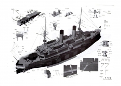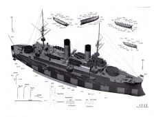 Описание: 20 листов цветных выкроек и инструкций для изготовления бумажной модели броненосца «Орёл» 1904 год
