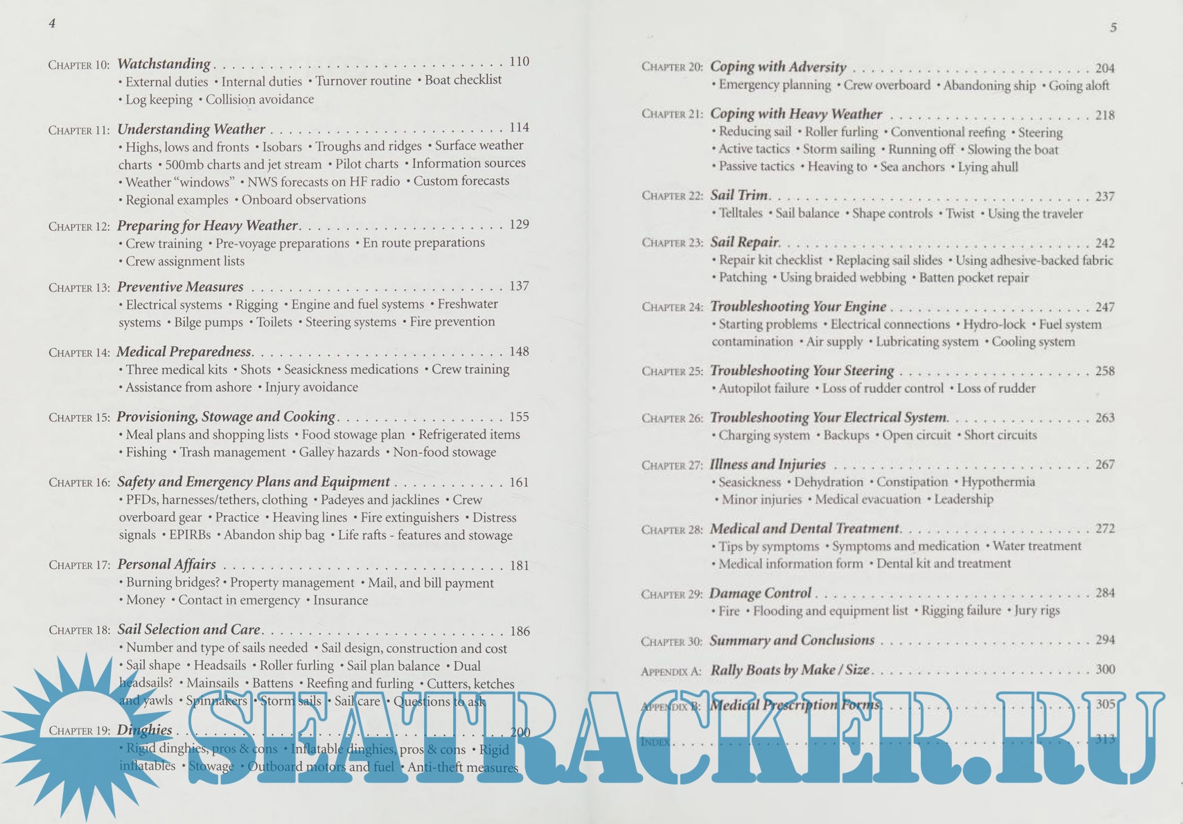 The first two-thirds of the book set forth practical steps to successful passagemaking under sail. The remaining third presents methods of coping with adversity in various forms: heavy weather, illness and injury, dismasting, fire, flooding, with specific sections on troubleshooting your engine, your steering and your electrical system. Illustrated, and with radio frequency lists, watchstanding schedule options, medical prescription information and more.