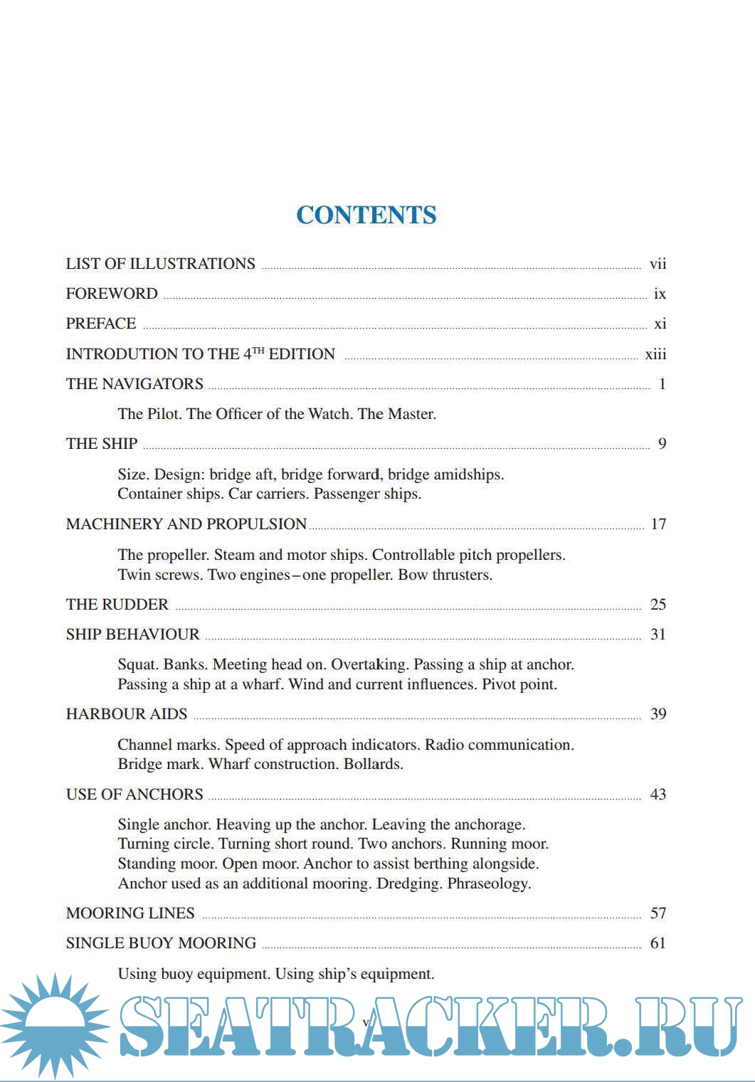 This book, as the name indicates is about practical ship handling. It concentrates on ship handling in the confines of pilotage waters which is a more specialised activity in the maritime profession and pilots are trained and experienced in this speciality.