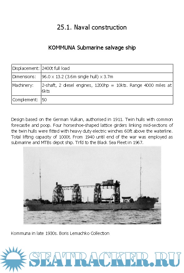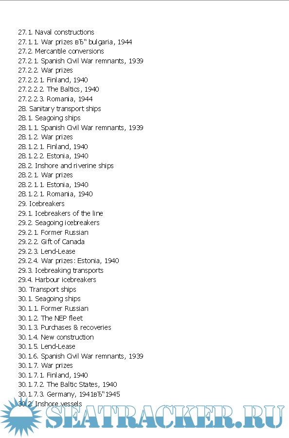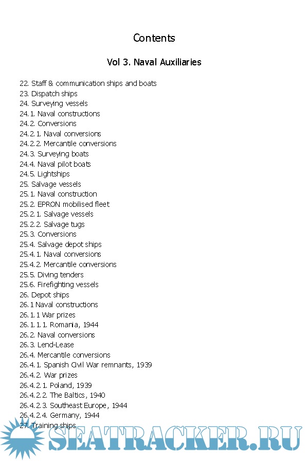 This third and final part of the series includes all the ships in naval service that were not frontline fighting vessels. Despite auxiliary status, these were not insignificant ships -indeed the icebreakers were the largest vessels built by the USSR before the war and carried so much prestige that every leading member of the Soviet regime wanted their name on one. Apart from the obvious fleet support types - oilers, tugs, and depot ships -this volume also covers unsung heroes like the salvage fleet, highly significant in the 1930s for generating much-needed foreign currency and later essential to the war effort, allowing so many sunken Soviet warships to be returned to service. Another major feature of this volume is the first clear and comprehensive listing of ex-mercantile transport ships, their periods of service and ultimate fates. Even harbor service craft are included, right down to the humble "heaters" that supplied warmth to icebound warships in the depth of the Russian winters.
