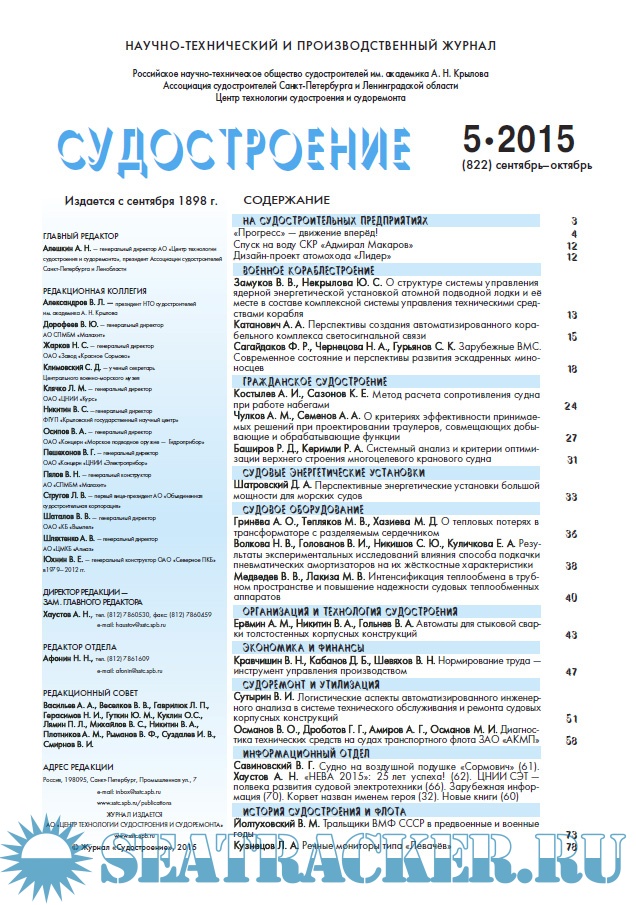 Журнал «Судостроение» №819 март-апрель - Горелов В.В. (зам. главного редактора) [2015, PDF]