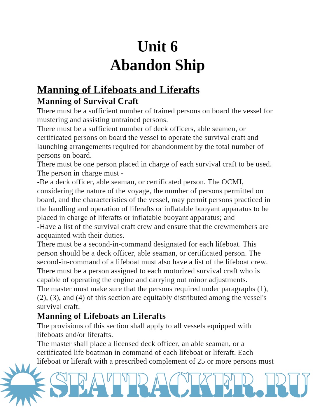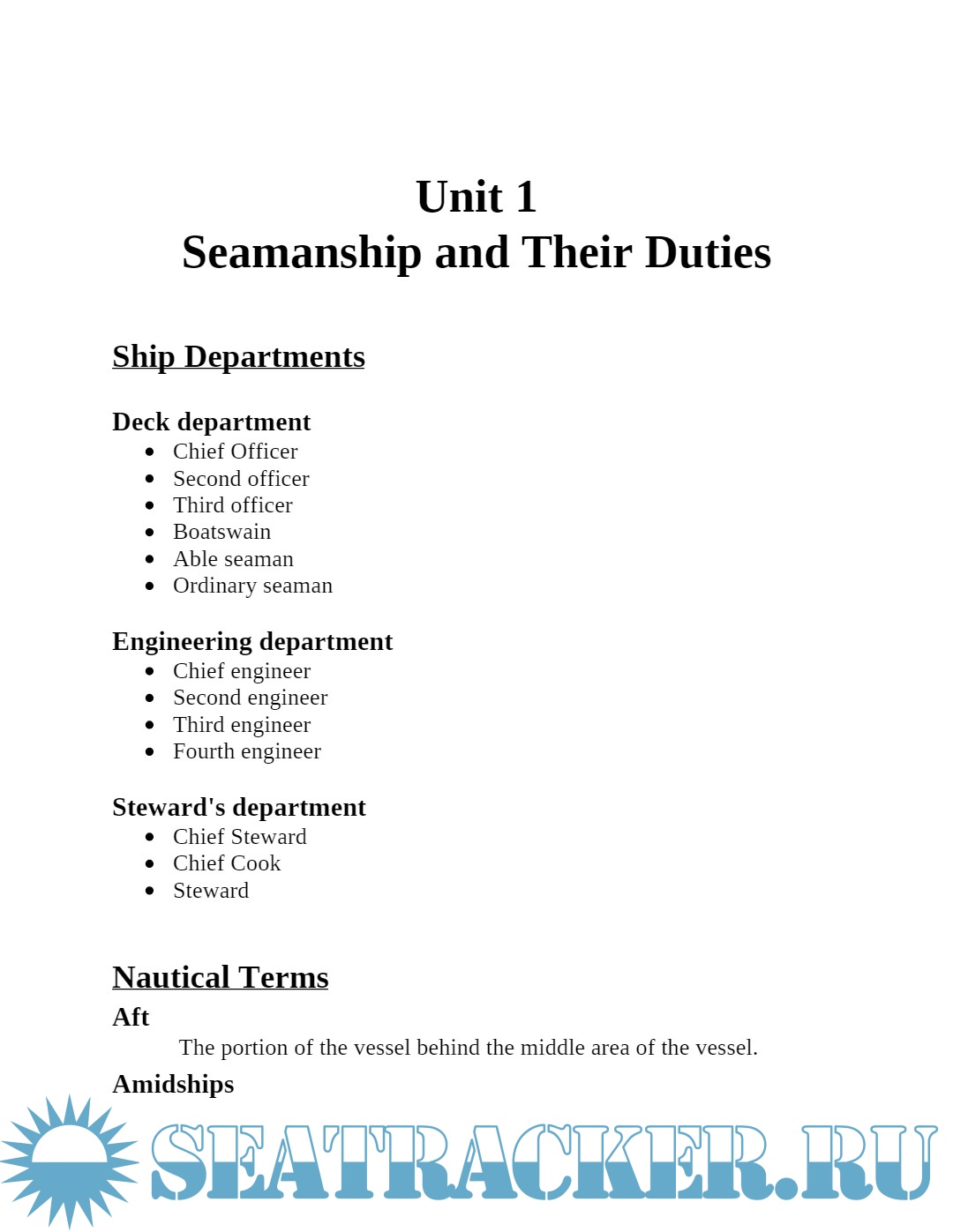 Elementary Navigation, Seamanship and Survival at Sea