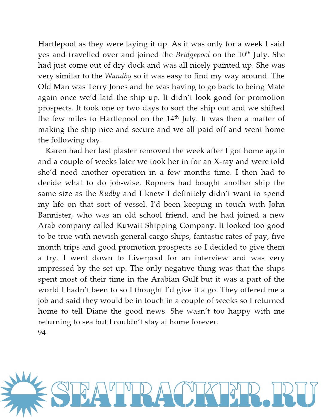 Year: 2012 Language: english Author: Bob Jackson Publisher: YouWriteOn Publishing Edition: Kindle | 1st Format: PDF Quality: eBook Pages count: 307 Description: Deck Apprentice at 17 in the prestigious Port Line, Bob Jackson’s life at sea began with a voyage to Australia. By 37 he was Skipper, trading to the Middle East. In the intervening twenty years he survived the deep freeze of a Canadian winter, wild Atlantic storms and Christmas beach barbecues in Melbourne. From a year on a tramp vessel to a stint on a vast bulk carrier, Bob’s experiences are of a world that no longer exists. Additional info: About the author: Bob Jackson, born in Carlisle in 1941 and the oldest of three brothers, spent his life at sea in the Merchant Navy, trading around the world’s major, and minor, ports. He is now retired and lives in Carlisle with his wife, also a writer, and their three dogs.
