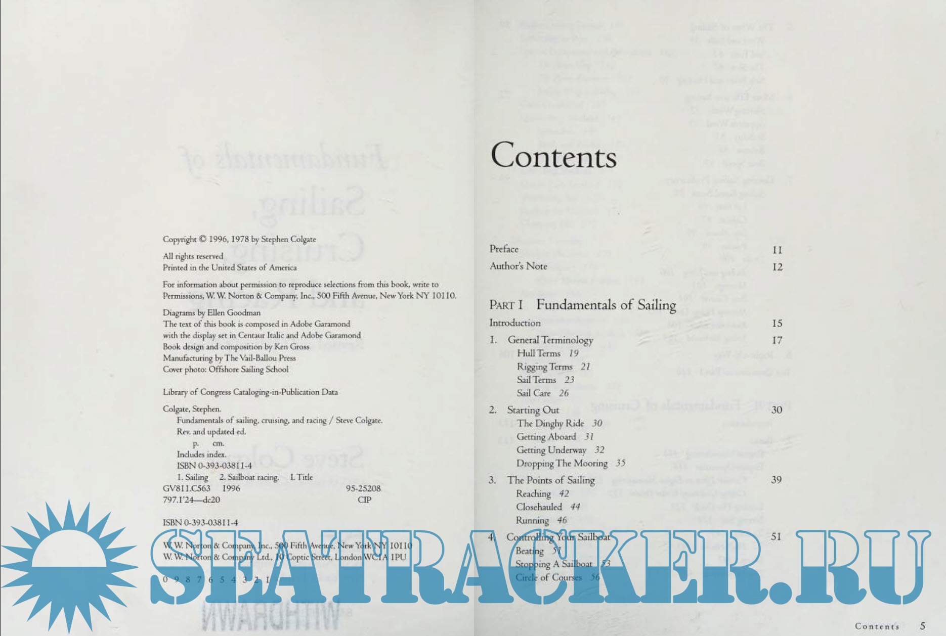 Year: 1996 Language: English Author: Steve Colgate Genre: Reference book Publisher: W. W. NORTON & COMPANY, INC Edition: Second ISBN: 978-0393038118 Format: PDF Quality: Scanned pages Pages count: 384 Description: For all sailors―novices and experienced racers alike―the acclaimed primer on sailing, cruising, and racing. Stephen Colgate, the founder and president of the Offshore Sailing School, removes the mystery of sailing and reduces the techniques to basic, simple principles. He instructs the reader on all matters from how sails work under various conditions to night sailing and piloting, tactical problems and heavy-weather racing, emergencies, safety, boat control, and all other fundamentals. This edition contains the latest technological advances in equipment, and the newest rules, regulations, and strategies that are critical to safe and pleasurable time on the water. The result is a superior resource that is an absolute must for all sailors.