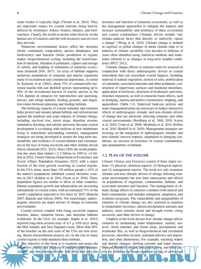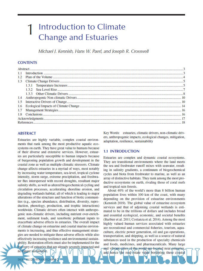 Description: Climate change is having an increasing impact on coastal, estuarine, and marine environments worldwide. This book provides state-of-the-art coverage of climate change effects on estuarine ecosystems from local, regional, and global perspectives. With editors among the most noted international scholars in coastal ecology and estuarine science and contributors who are world-class in their fields, the chapters in this volume consist of comprehensive studies in coastal, estuarine and marine sciences, climate change, and coastal management and provide an extensive international collection of data in tabular, illustrated, and narrative formats useful for coastal scientists, planners, and managers.