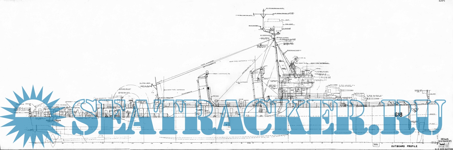 Описание: Архивные чертежи эсминца США DD-618-DMS37 - USS "Davison" (Benson Class) 1950 год