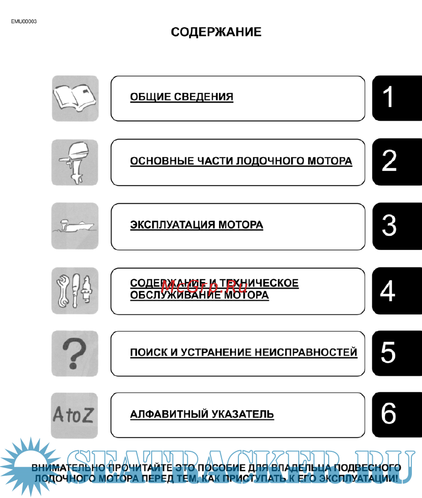 Сборник документации по обслуживанию, ремонту, запасным частям и аксессуарам для двигателя Yamaha F4A