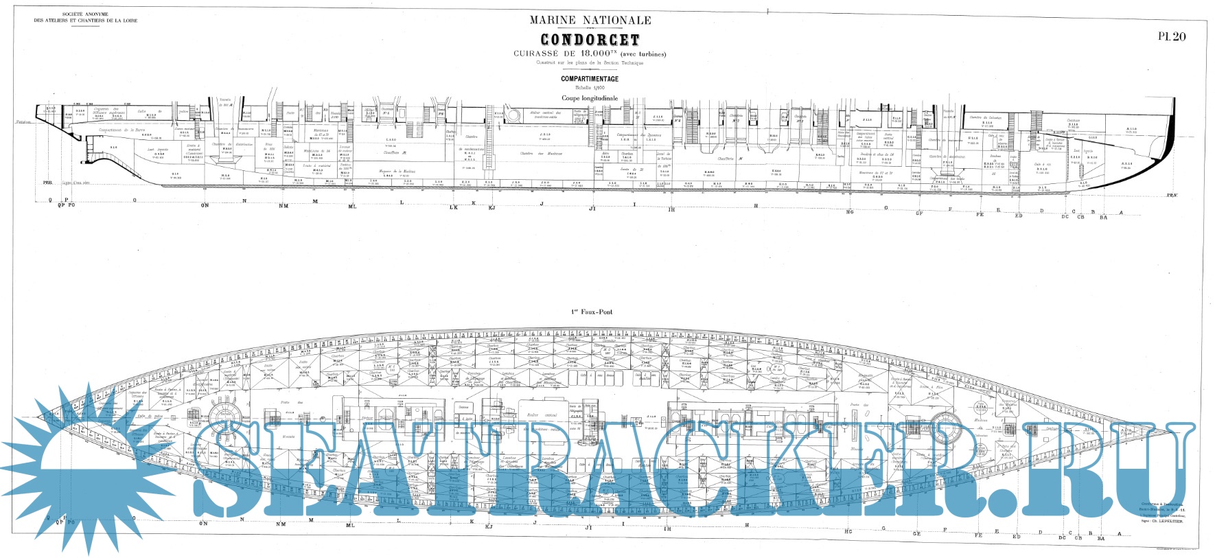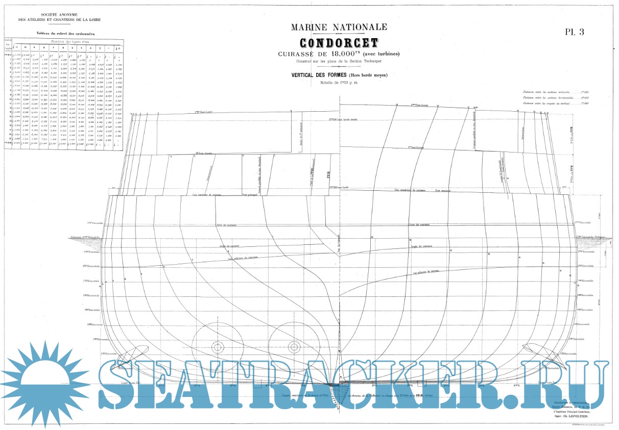 Архивные чертежи эскадренного броненосца CONDORCET (Франция) 1909 год