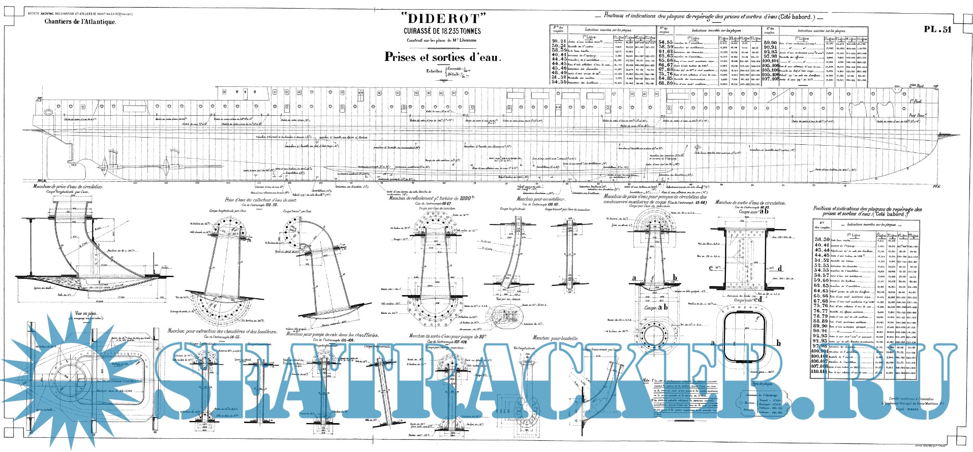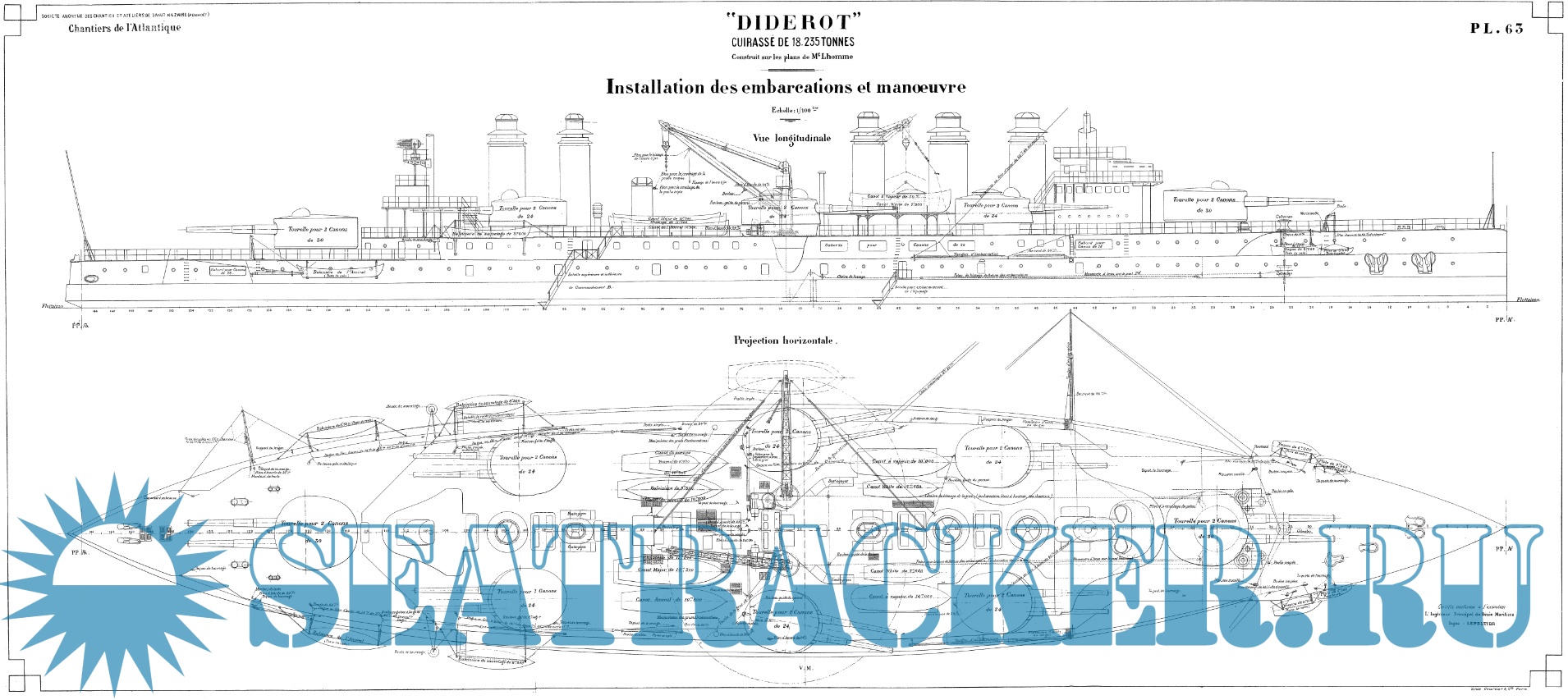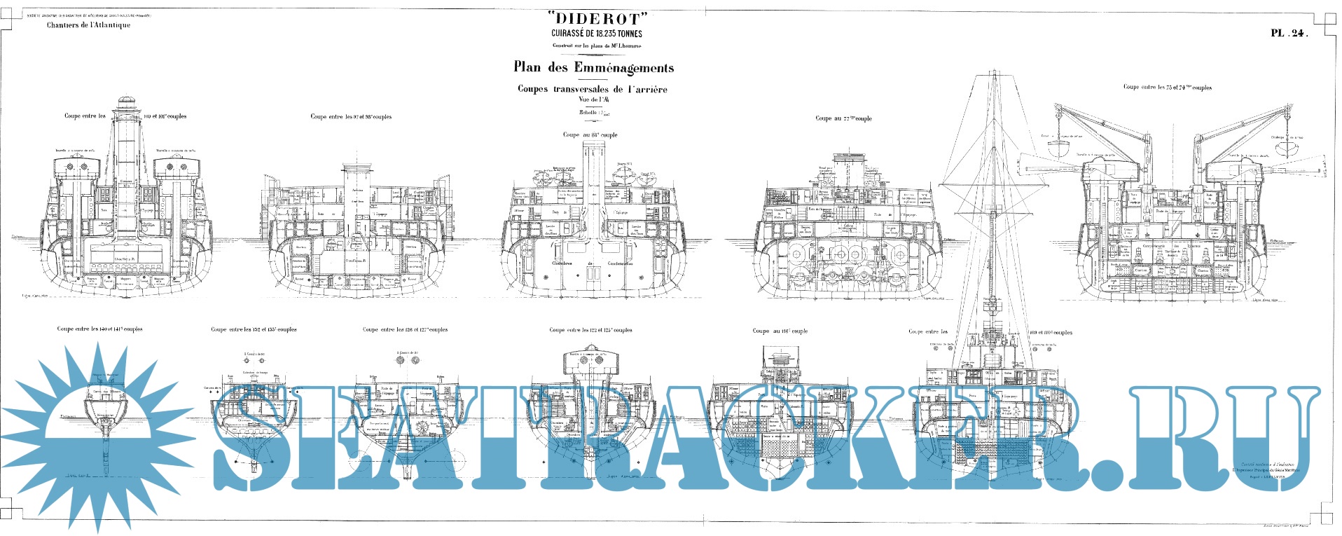 57 листов архивных чертежей эскадренного броненосца DIDEROT (Франция) 1909 годСкриншоты