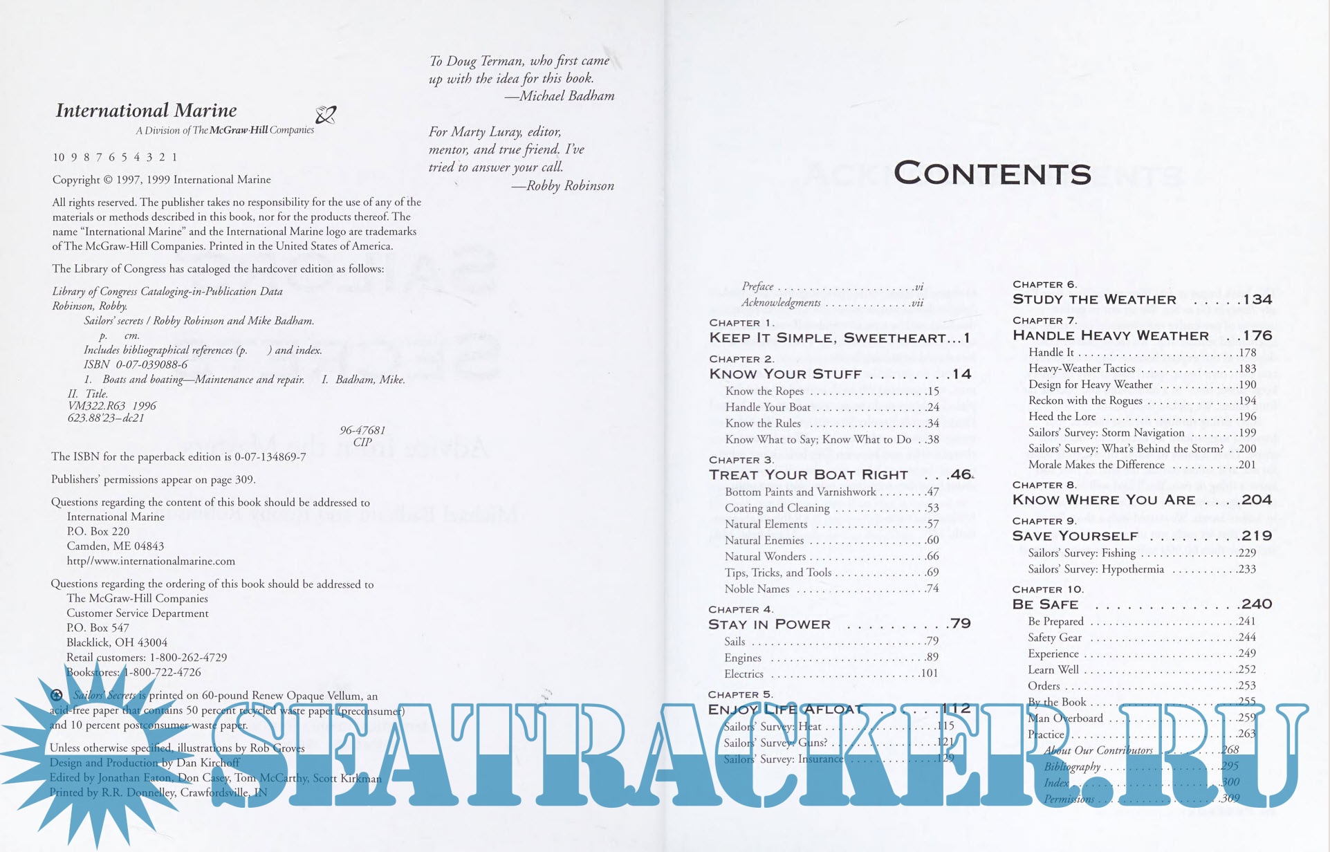Year: 1997 Language: English Author: Mike Badham Genre: Handbook Publisher: International Marine Edition: First ISBN: 978-0070390881 Format: PDF Quality: Scanned pages Pages count: 309 Description: With pithy, often iconoclastic advice on all aspects of seamanship and boat maintenance, Badham and Robinson have distilled in this book the seagoing experience of hundreds of the world's sailing experts. The result is the nautical equivalent of an experts' forum, including instructive and sometimes humorous and sometimes biting advice on: boat maintenance; understanding weather; safety at sea and storm strategies; gear and outfitting; sailing well; piloting; engine troubleshooting; simple solutions to complex problems. From Meade Gougeon on maintaing your boat to Buddy Melges on sailing it well, Walter Greene on taking it to sea, and Steve Callahan on coming home again, the insights shared here were developed over millions of sea miles.