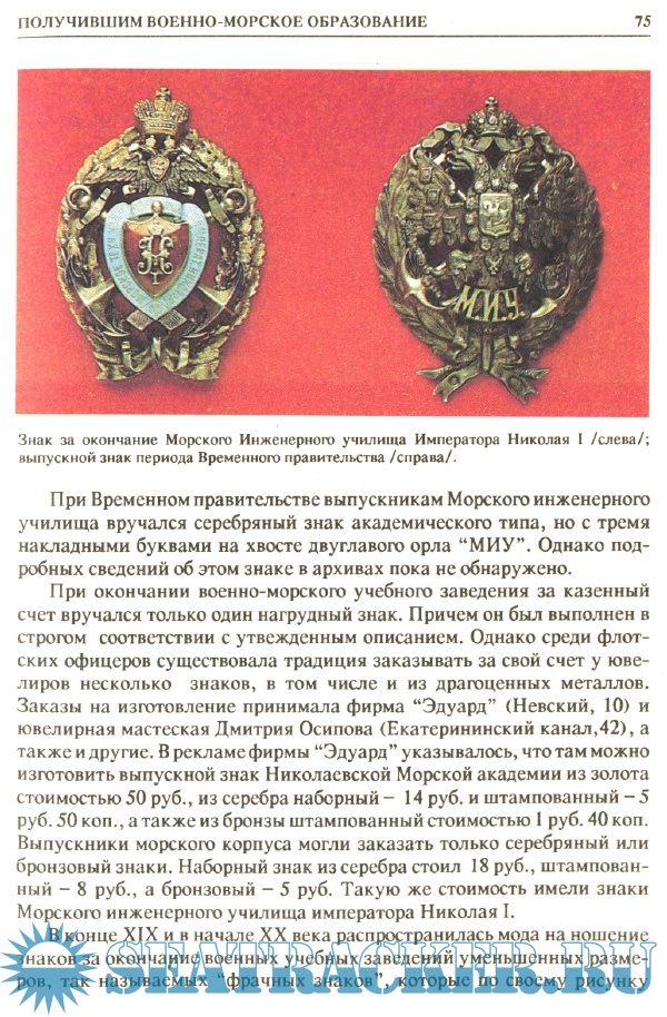 Описание: В первом выпуске альманаха рассказывается о нагрудных знаках, вручаемых за окончание Николаевской Морской академии, Морского корпуса и Морского инженерного училища Императора Николая I. В передовой статье изложена история Российского флота в период царствования Петра I.