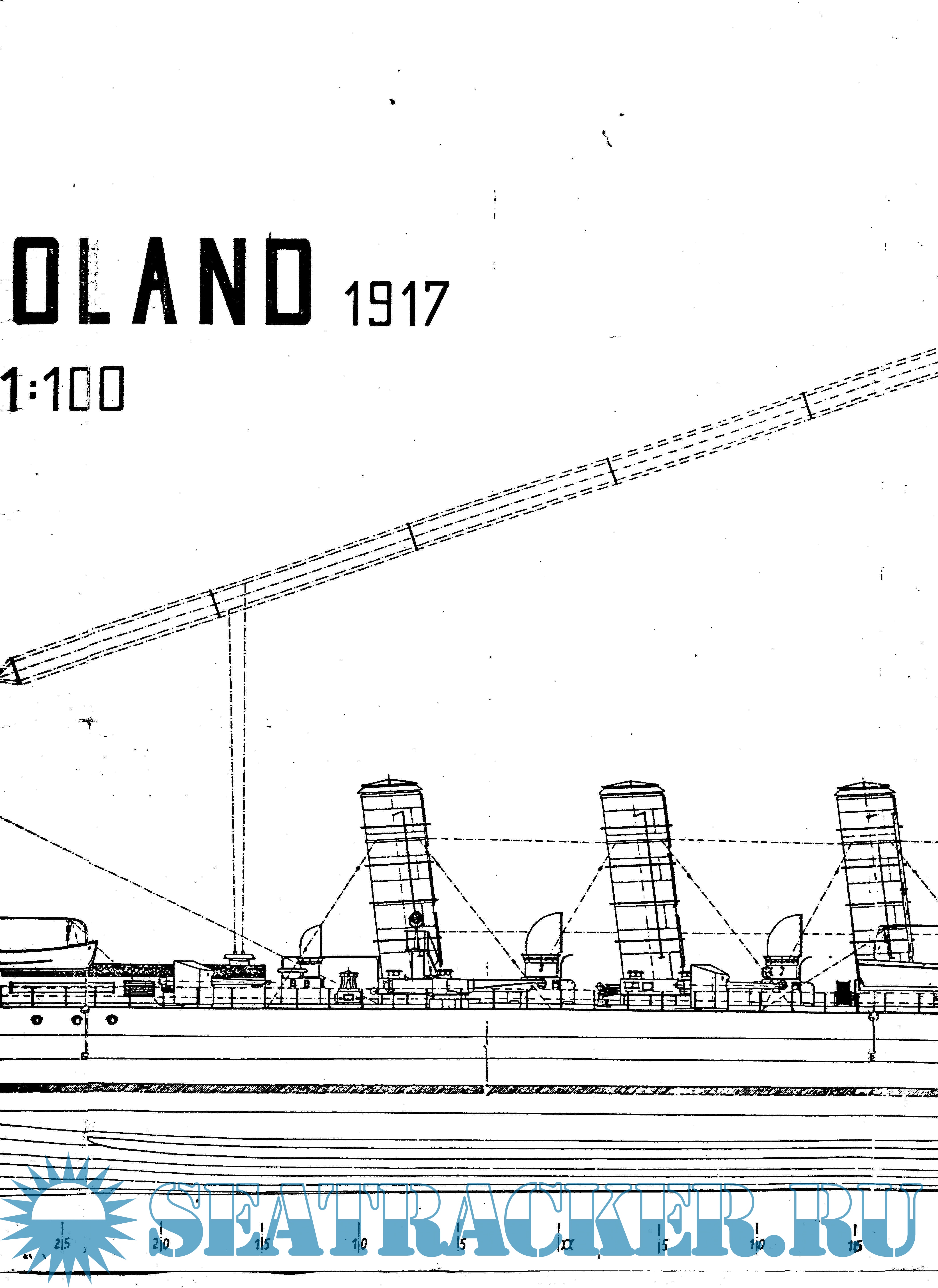 Описание: 30 листов чертежей легкого крейсера Австро-Венгерского флота "Гельгоданд" 1917 год