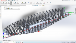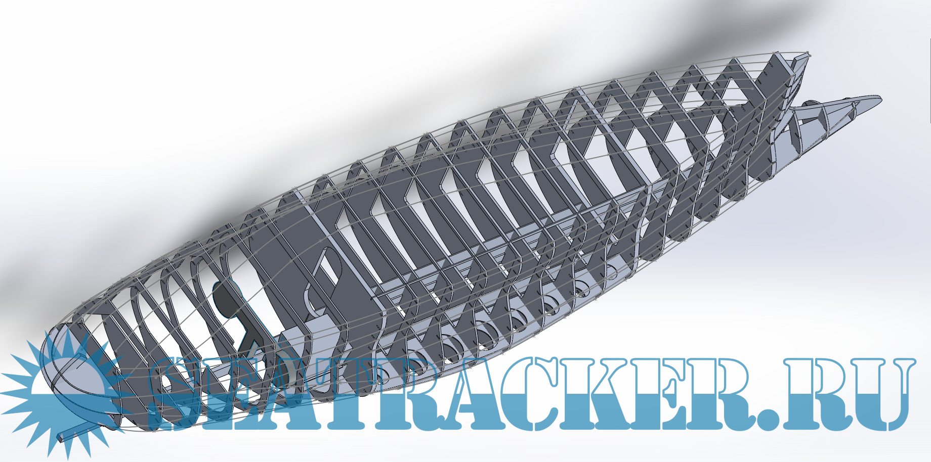 Все файлы конструкции находядся в одной папке. Это " узловой проект корпуса", посколько проект сделан на уровне "сложного машинного узла" и все еще далеко до "агрегатного состояния постройки". Внутри папки находятся файлы FULL_ASSY_1_2_3_4 с помощью которых, в среде SOLIDWORKS, можно запустить визуализацию узла в целом (визуализация на разных степенях завершенности узла). Нужно обратить внимание, что детали узла (шпангоут, стрингер и т.д) не отработаны до уровня "рабочих чертежей" - с допусками и т.д.. Предоставляeтся также .IGS файл для импорта модели в другие программные среды.