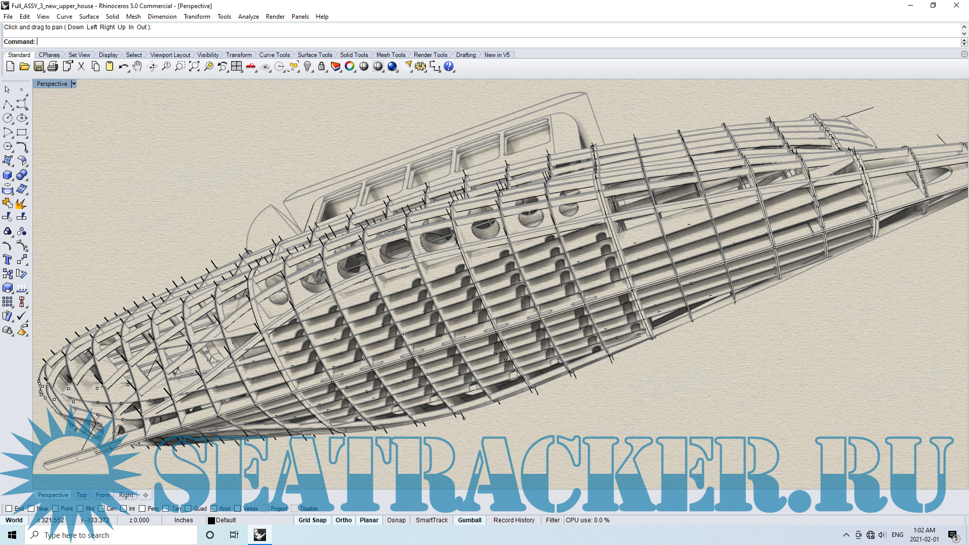 Description: Модель конструкции корпуса приватного судна дального круиза (Масштаб 1:1). Модель создана на платформе SolidWorks 2019.