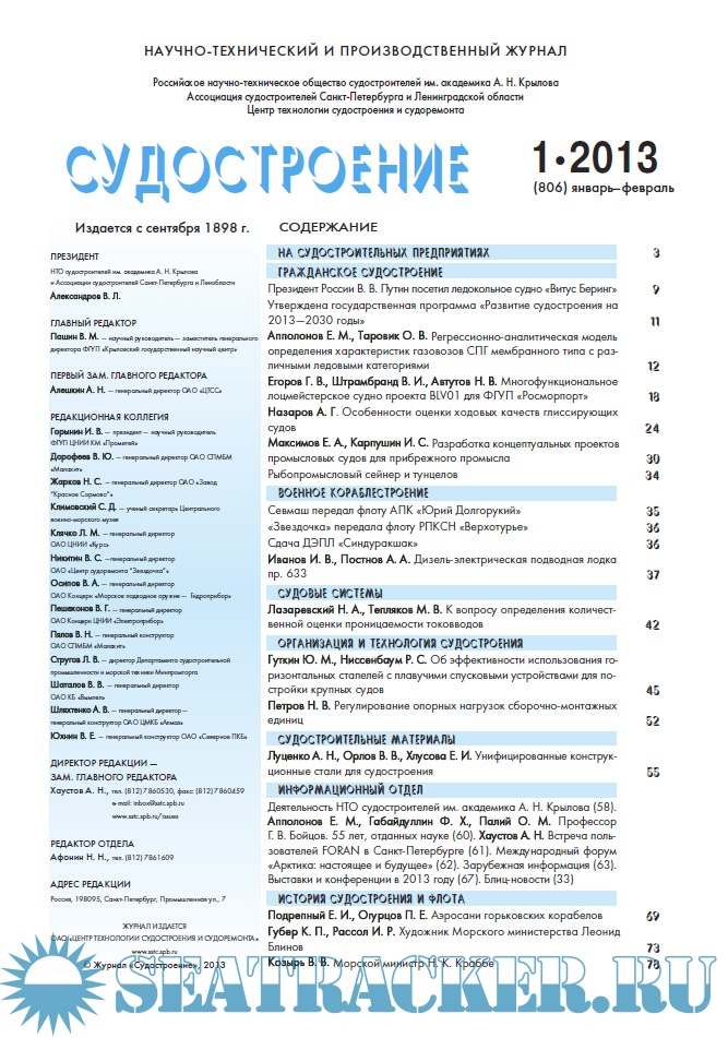 Журнал «Судостроение» №806 январь-февраль