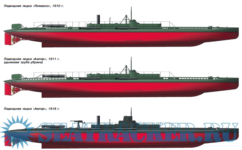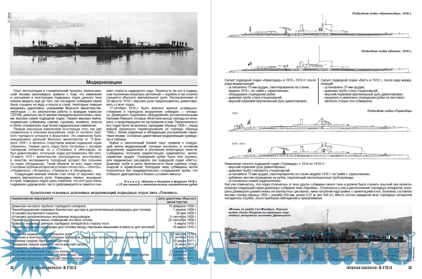 подводных лодок с паровыми машинами для надводного хода. Именно к таким и принадлежат герои данного выпуска, явившиеся, помимо всего прочего, самой массовой серией французских субмарин периода Первой мировой войны. На примере «плювиозов» впервые в отечественной литературе описываются технические
