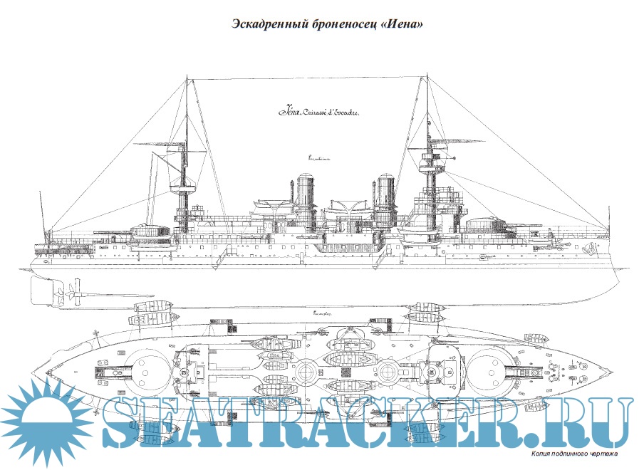 Описание: 12 марта 1907 г. из кормового погреба, стоявшего в доке Тулона, броненосца "Йена" (Iena) повалил дым. Пламя быстро приблизилось к 305-мм зарядам и после серии страшных взрывов, корабль превратился в груду металла, унеся жизни 118 моряков… "Йена" была развитием кораблей типа "Шарлемань" (Charlemagne), ставших первыми французскими эскадренными броненосцами, использовавшими общепринятую на других флотах схему размещения орудий главного калибра в двухорудийных башнях. В 1894-1900 гг. построили три броненосца типа "Шарлемань" ("Шарлемань", "Сен-Луи", "Голуа"), которые имели типичную для "французов" защиту: поясная броня возвышалась над ватерлинией всего лишь на один метр и малейший крен в бою мог вызвать затопление корабля через пробоины в незащищенной обшивке. Устранить недостатки были призваны новые и более мощные "Йена" и "Сюффрен". Несмотря на то, что к 1914 г. броненосцы типа "Шарлемань" уже порядком устарели, они активно действовали на Средиземном море в Первую Мировую. "Шарлемань" и "Сен-Луи" благополучно воевали в Дарданелльской операции и на Солоникском фронте. "Сюффрен" и "Голуа" сильно пострадали у Дарданелл от огня турецких береговых батарей, а вернувшись в строй затонули от торпед германских субмарин.