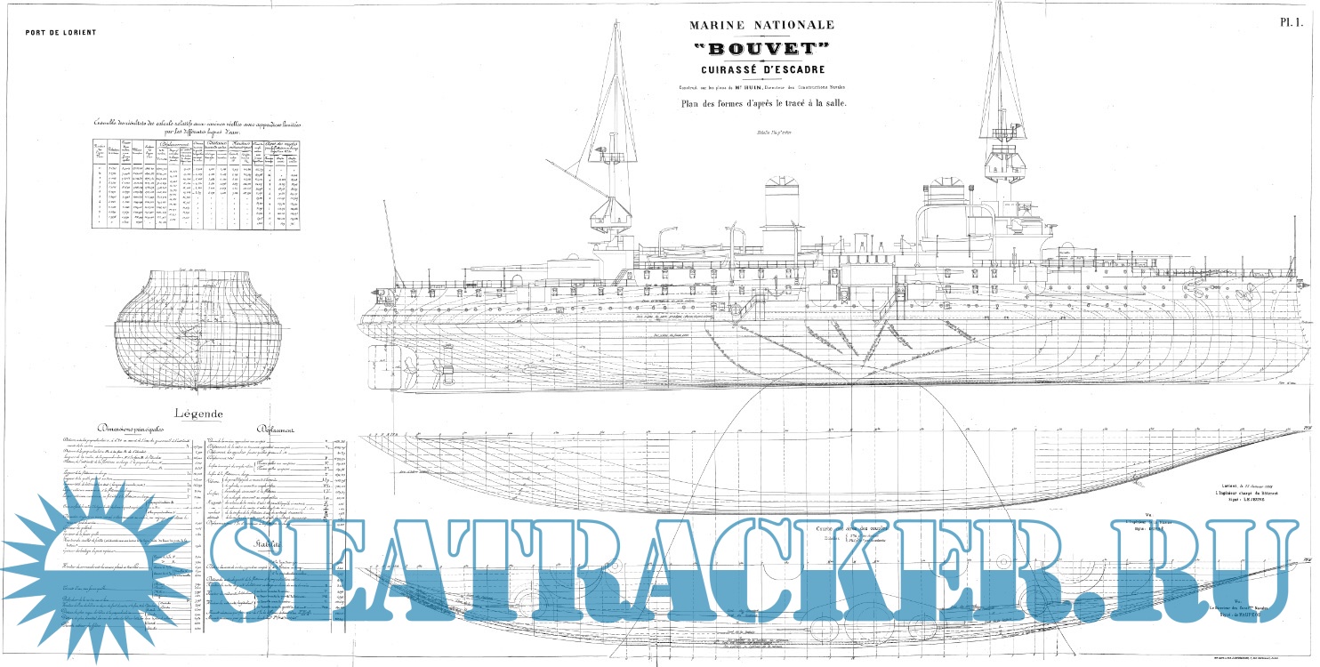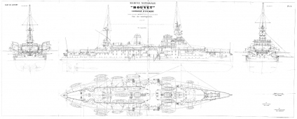 Архивные чертежи эскадренного броненосца BOUVET (Франция) 1896 год