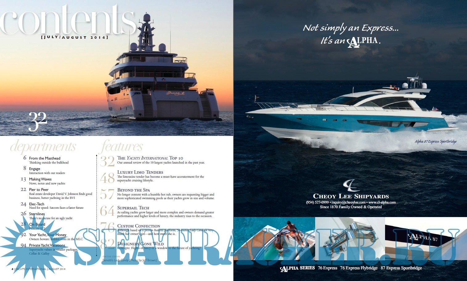 Description: Yachts International Magazine brings the pleasure and passion of worldwide luxury yachting home to American yachtsmen interested in purchasing the next yacht of their dreams. Our insider's view of the world’s most luxurious yachts, the shipyards that build them, the designers that beautify them, the destinations they visit and the lavish living they offer, fuels the desires of our affluent, dedicated readers. With extensive influence in the United States and in other key yacht markets, Yachts International utilizes its superior network of boat shows, marinas, newsstands and luxury events to engage its passionate readers in the exclusive circles where they live, play and travel.