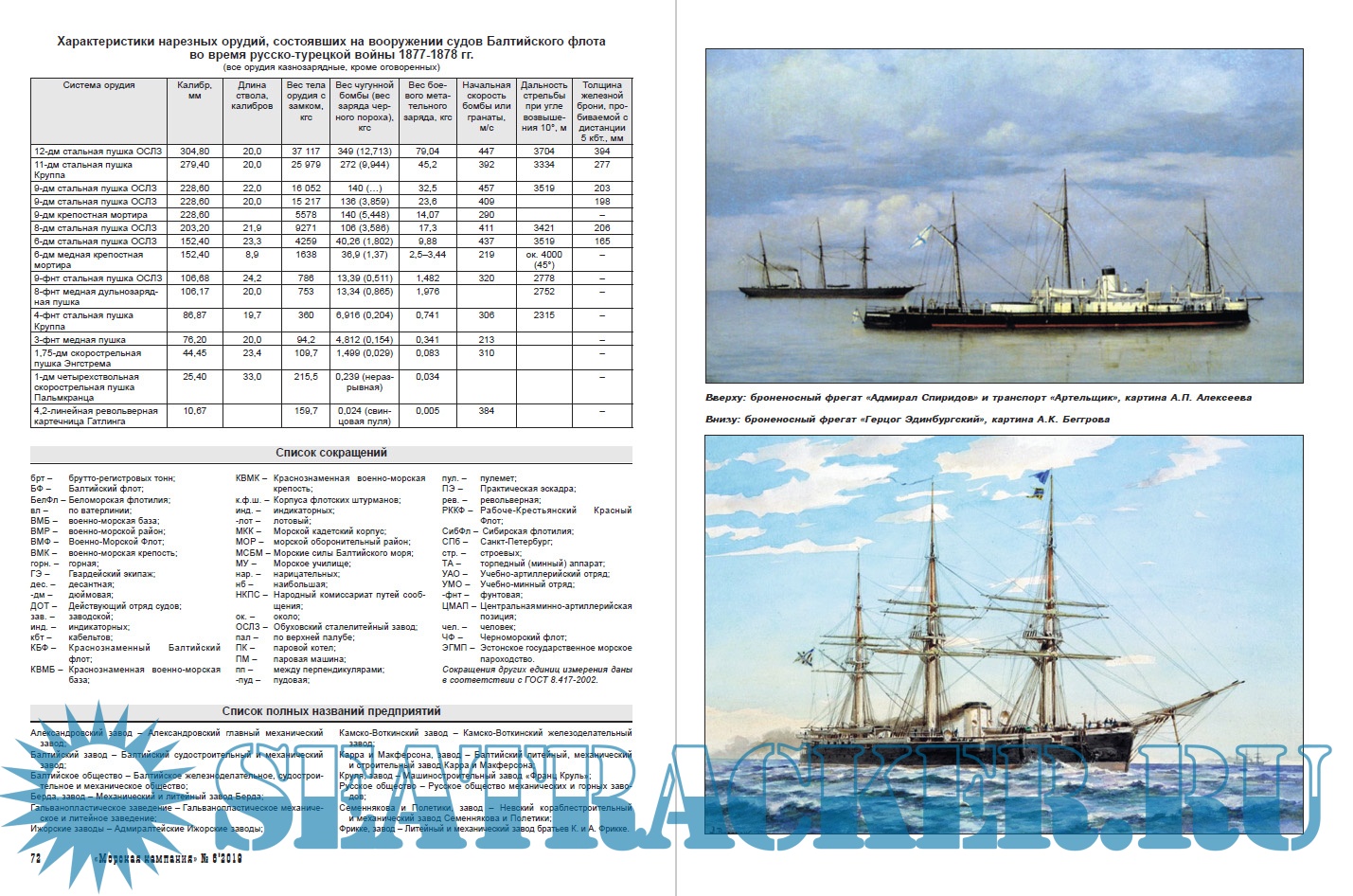 Балтийского флота в период с 12 апреля 1877 г. по 19 февраля 1878 г. По каждому из кораблей приводятся сведения о конструкции и испытаниях, переоборудовании