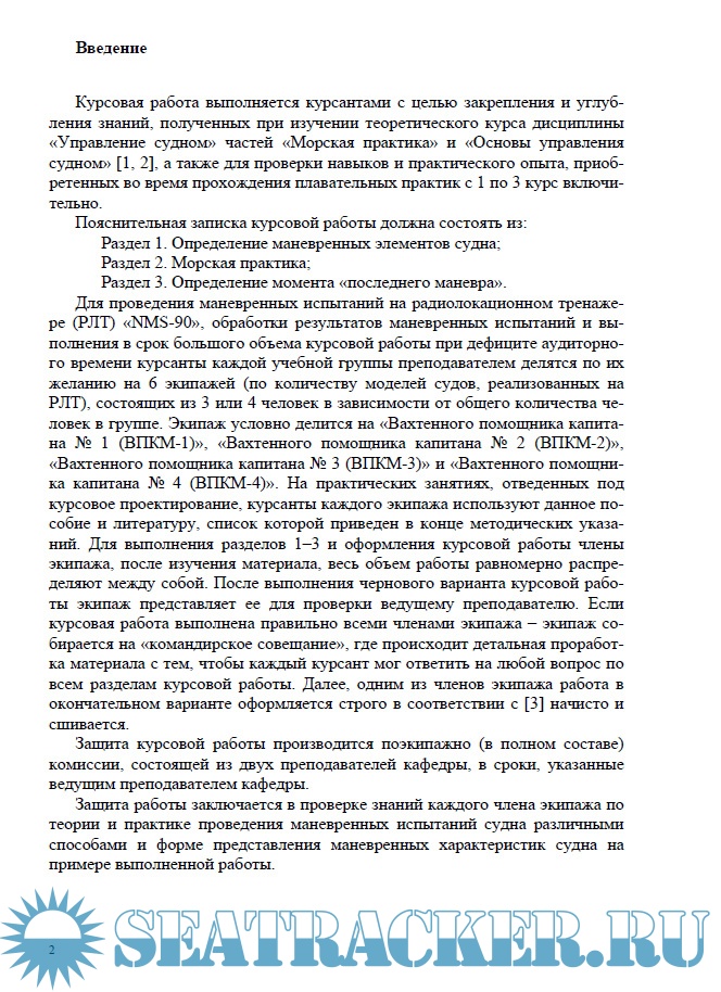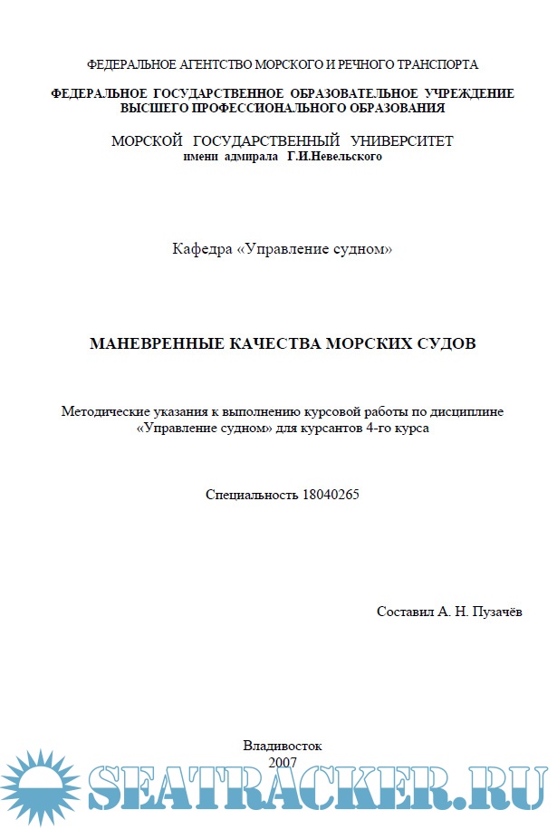 Описание: Методические указания к выполнению курсовой работы по дисциплине "Управление судном"