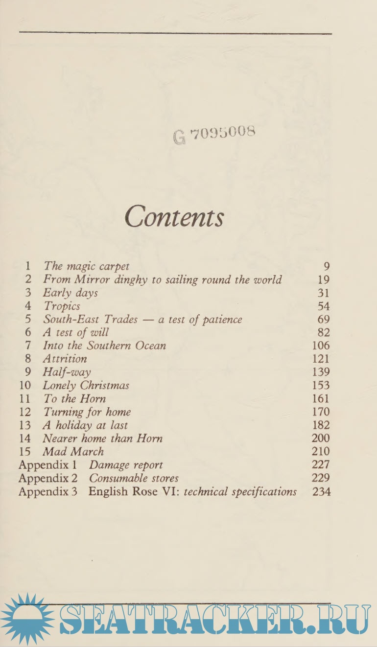 Year: 1985 Language: English Author: John Ridgway Genre: Textbook Publisher: Sterling Pub Co Inc Edition: First ISBN: 978-0850597578 Format: PDF Quality: Scanned pages Pages count: 242 Description: He had sailed singlehanded across the Atlantic, rowed across with a companion and competed in the Whitbread Round-the-World Yacht Race. In the summer of 1983, John Ridgeway sought another challenge. With Briggs, the sailing instructor at his School of Adventure in Scotland, he would circle the globe without touching land; the target, to set a record for fastest passage. They departed from Ardmore, Scotland, on September 1, on the school's 57-foot ketch, English Rose VI. Each man kept a diary; the reader follows the day-by-day progress of the voyage. Briggs's running account of ship maintenance will be of special interest to long-distance sailors; for the older and more experienced Ridgeway, the journey was a period of self-examination. The pair endured physical and mental hardships, extremes of weatherfrustrating calms, violent storms, one near-capsize. In March 1984, English Rose VI and its crew returned to Ardmore after a record 203-day passage. For all sailors, and for landlubbers who enjoy adventure.