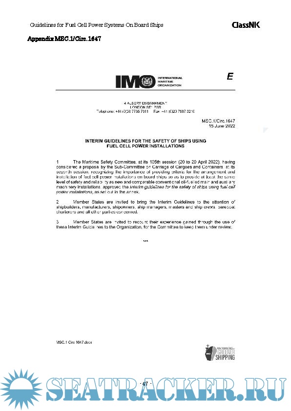 summarizing information related to fuel cells and incorporating the interim guidelines of the IMO, titled, the