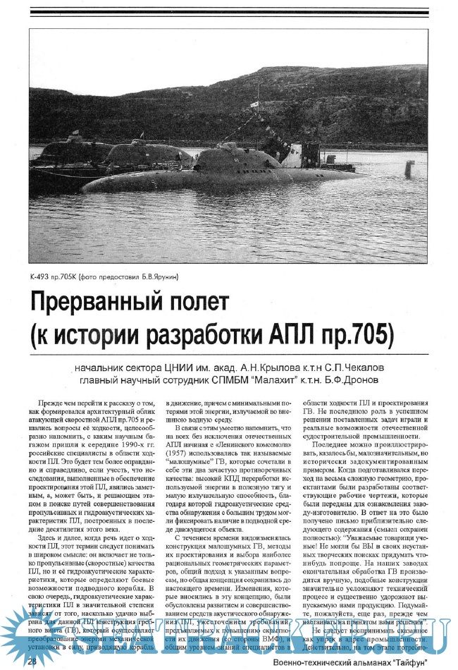 С.П.Чекалов, Б.Ф.Дронов. Прерванный полет (к истории разработки АЛЛ пр.705)