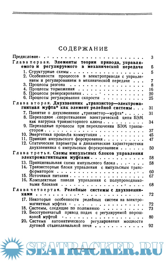 Описание: Книга посвящена вопросам электропривода, регулируемого в механической передаче при помощи электромагнитных (фрикционных и порошковых) муфт, с управлением от транзисторов. Рассмотрены элементы теории приводов, управляемых и регулируемых в механической передаче. Подробно изложены вопросы динамики ``двухзвенников`` - исполнительных механизмов систем быстродействующего электропривода такого типа - и схемы управления ими. Описаны примеры выполнения релейных систем, следящих по положению, по скорости и по параметру технологического процесса. Книга рассчитана на специалистов, работающих в области автоматического регулирования и привода.