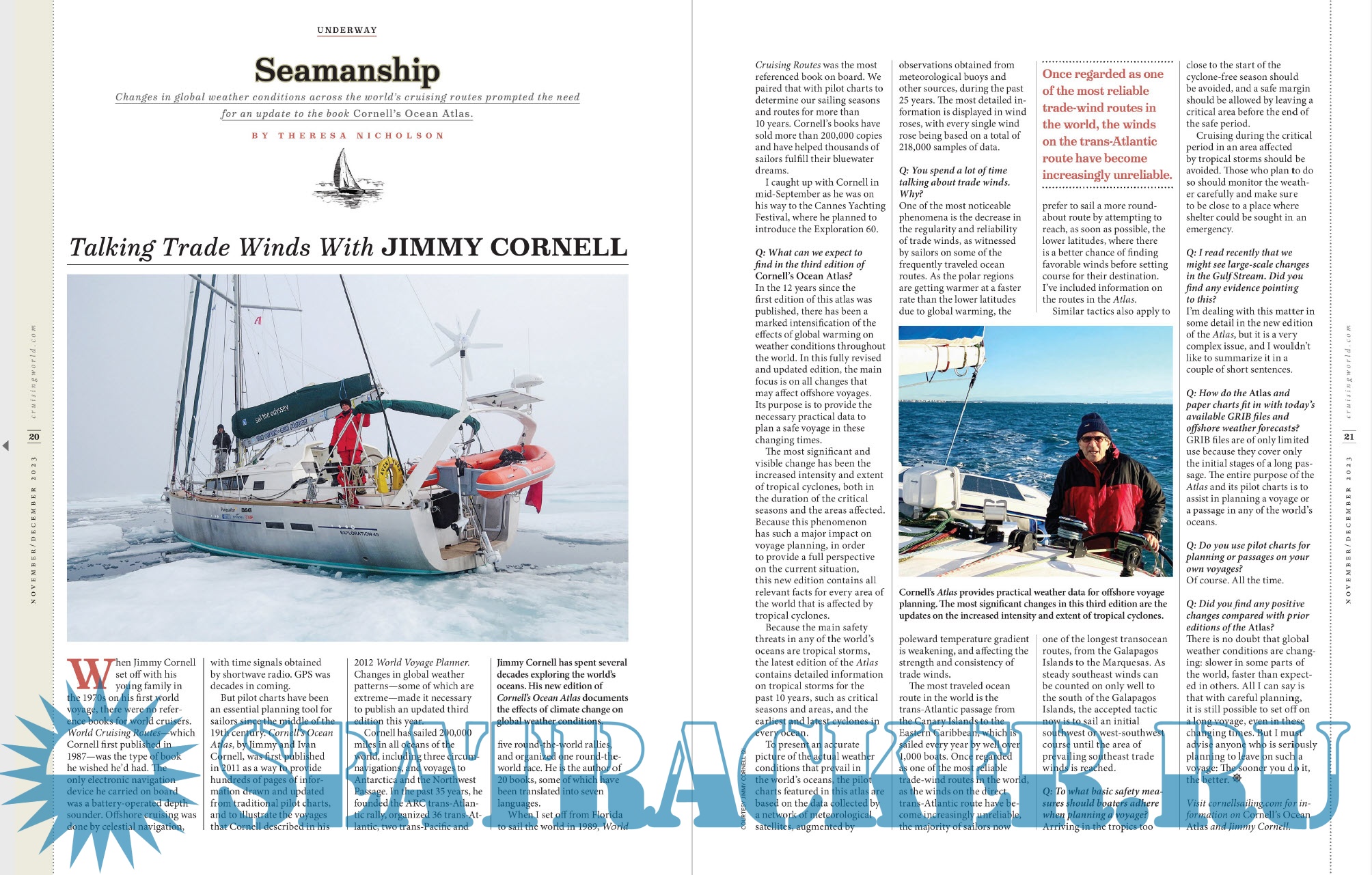 Year: 2023 Language: English Editor: Andrew Parkinson Genre: Periodical (magazine) Publisher: A Bonnier LLC Company Edition: 11, 12 2023 Format: PDF Quality: eBook Pages count: 84 Description: Cruising World is your passport for exploring the world's coastlines and oceans while voyaging under sail. Its contributors inspire and entertain through stories, pictures and videos that underscore the beauty and adventure of sailing, while providing instruction on the disciplines of seamanship, navigation and boat handling.