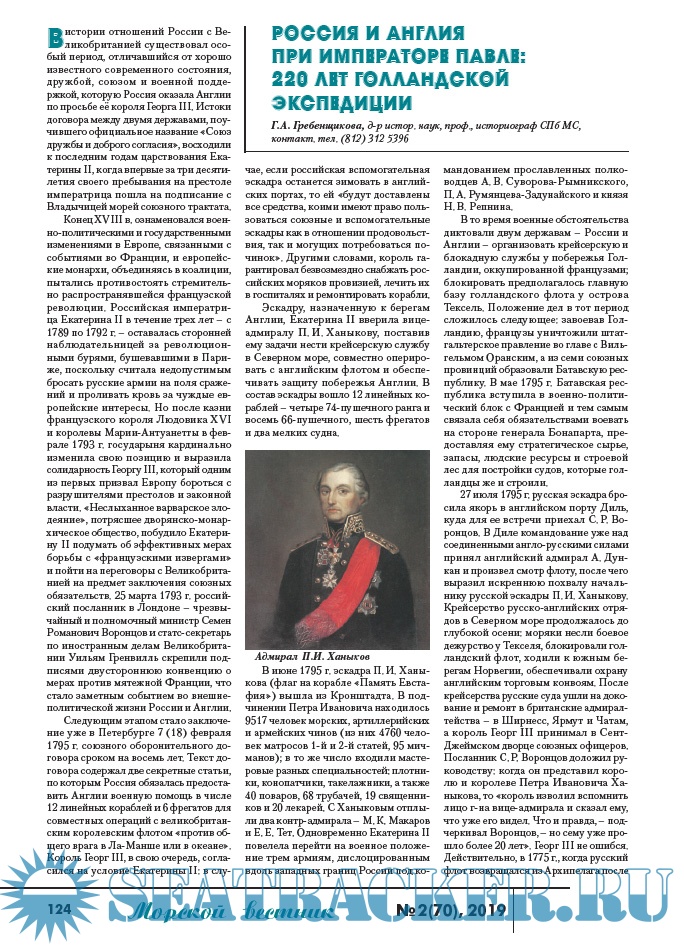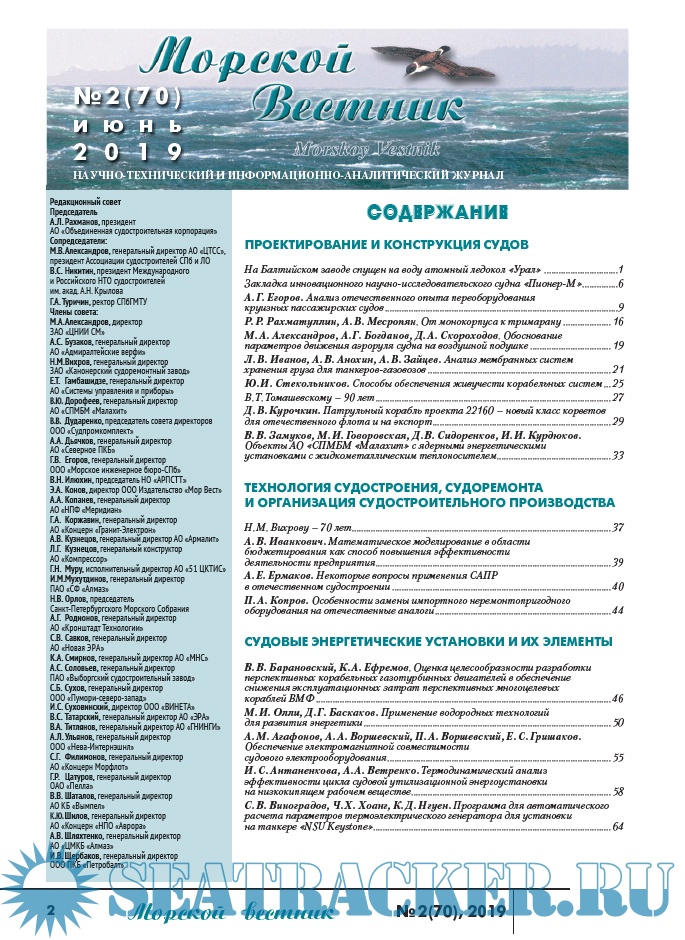 Год выпуска: 2019 Язык: русский Автор: группа авторов Жанр: Периодическое издание (журнал) Издание: 2019-02 Формат: PDF Качество: Изначально компьютерное (eBook) Количество страниц: 110 Описание: Информационные, аналитические, научно-технические и исторические статьи по морской технике и технологиям, экологической безопасности судостроения и судоходства, освоению океана и шельфа, безопасности мореплавания, истории флота и мореплаваний, морскому бизнесу и праву.