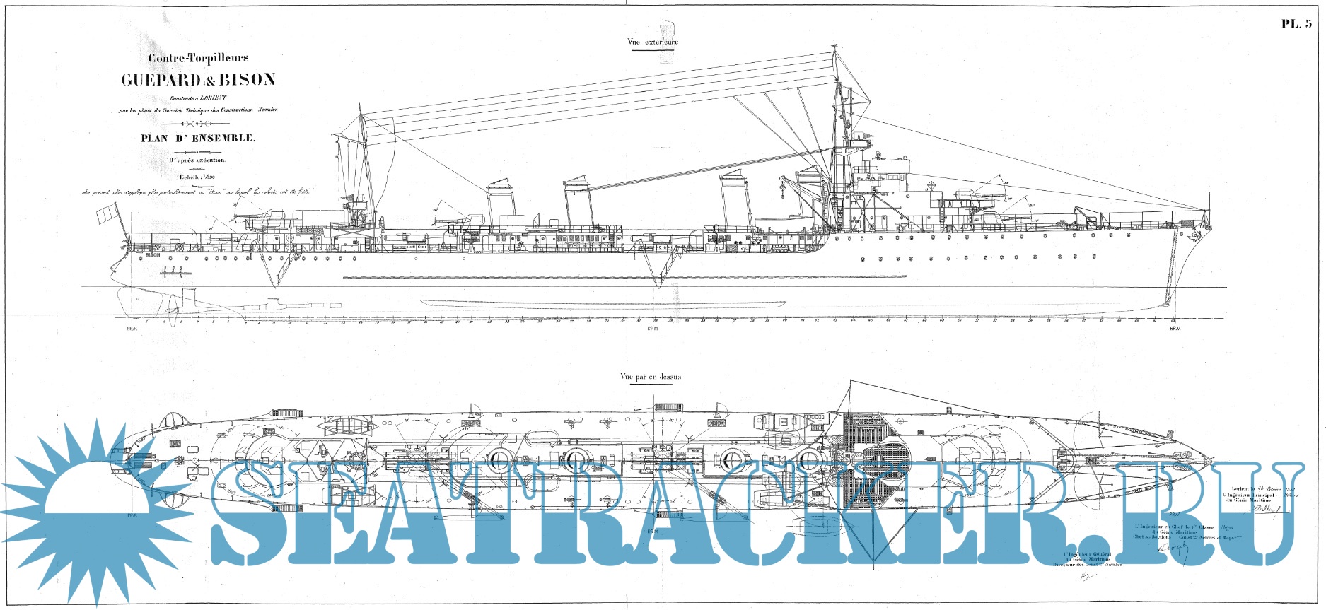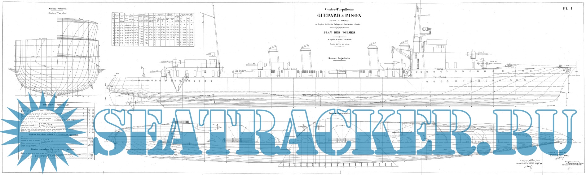 Архивные чертежи французского контр-миноносца GUEPARD 1928 год