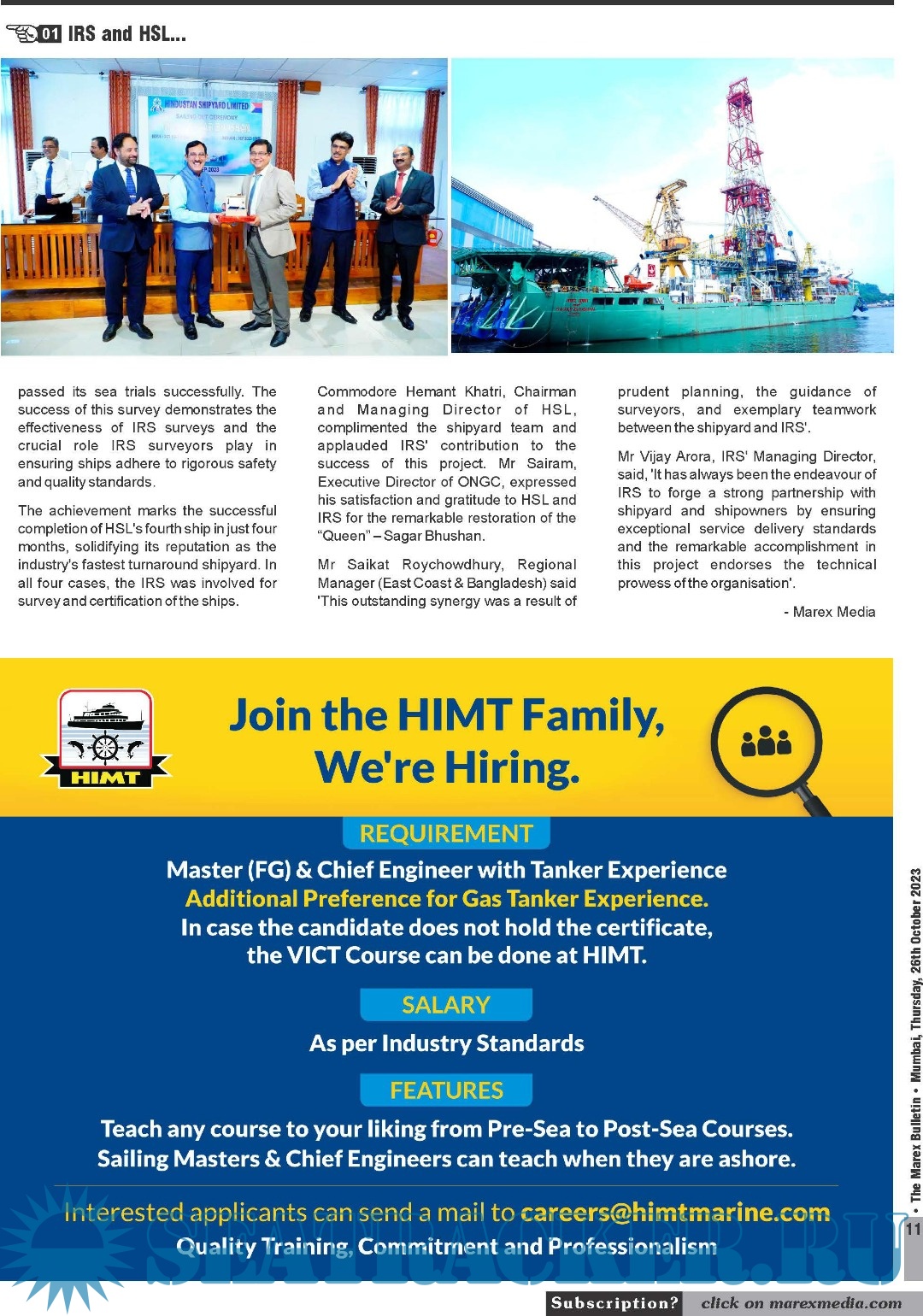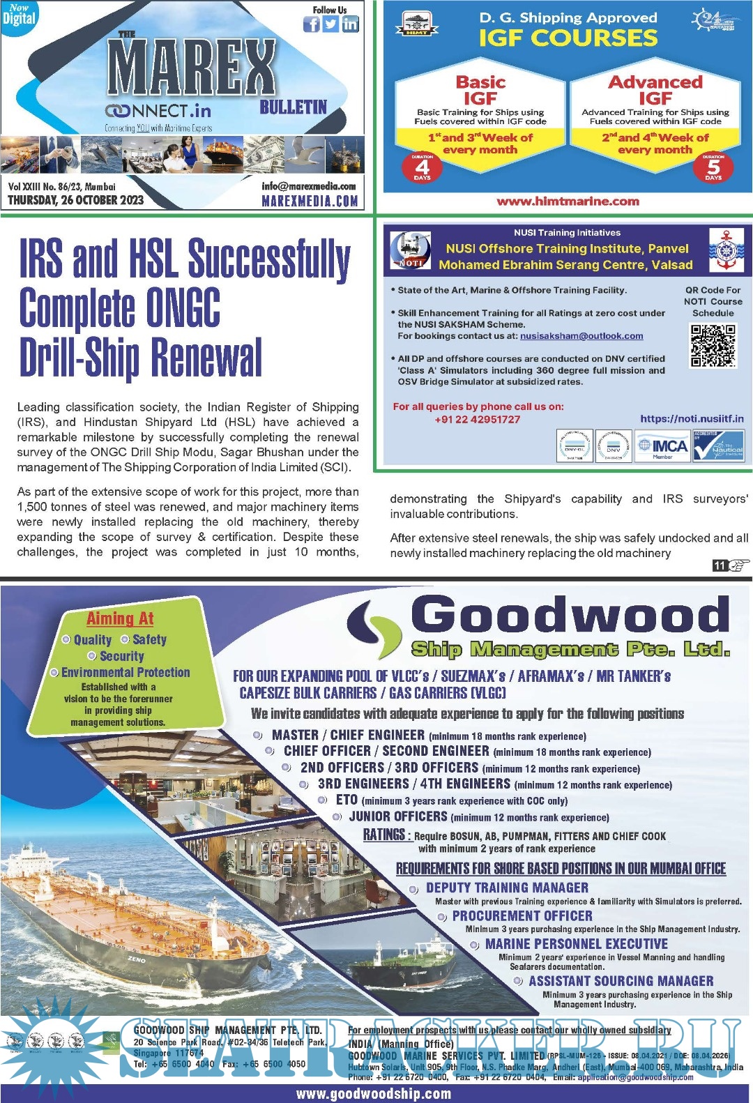 The Leading magazine for seafarers to locate Ship-board Employment opportunities, Training Institutes, Shipping companies.