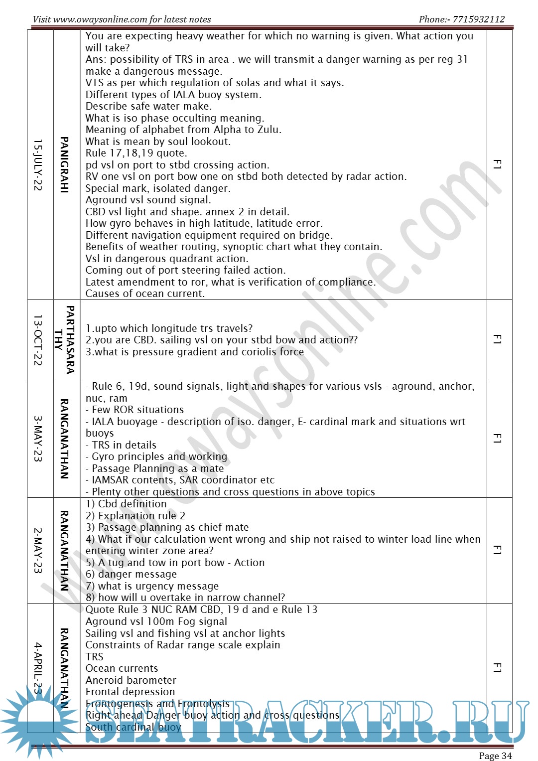 Orals Question Bank (October 2023) for Chief Mate F.G. Mercantile Marine Department (MMD), India Examinations