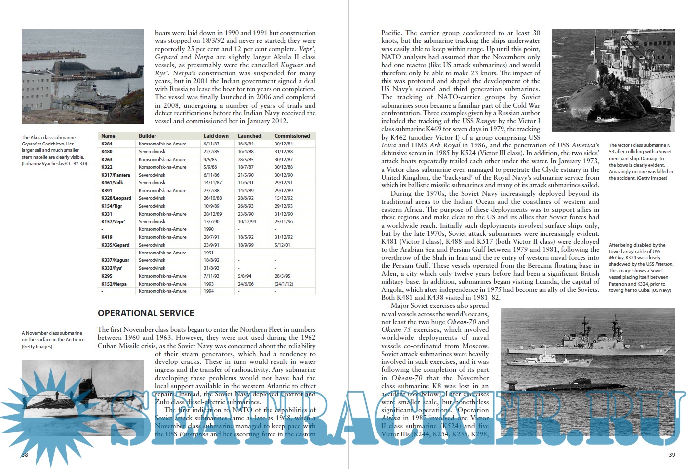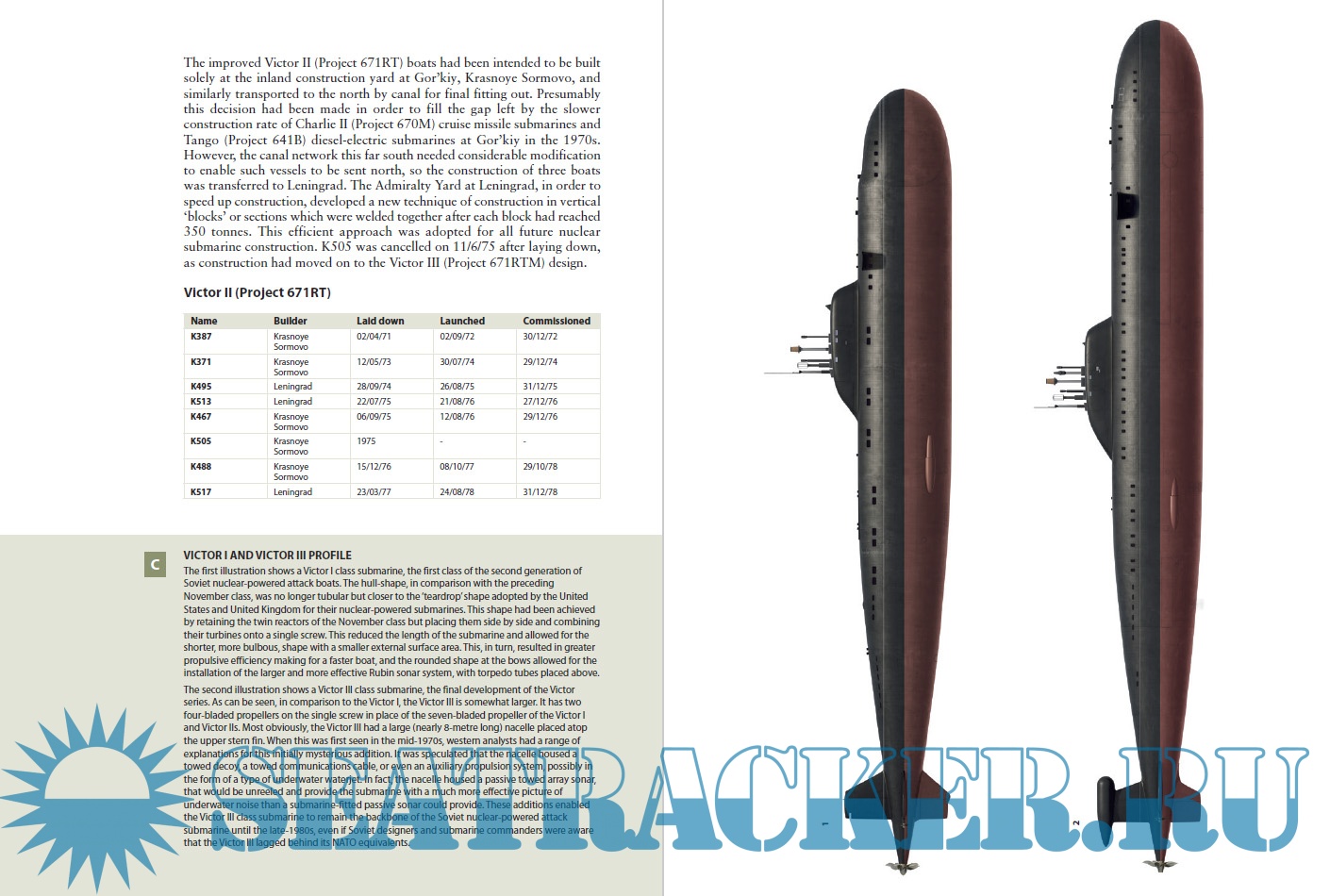 Year: 2022 Language: english Author: Edward Hampshire Genre: History Publisher: Osprey Publishing Edition: New Vanguard 287 Format: PDF Quality: eBook Pages count: 49 Description: This fascinating title explains and analyzes the history, technology, and service of the Soviet Navy's nuclear attack submarines, the formidable high-tech boats on the front line of the Cold War at sea. In this highly detailed book, naval historian Edward Hampshire reveals the fascinating history of the nuclear-powered attack submarines built and operated by the Soviet Union in the Cold War, including each class of these formidable craft as they developed throughout the Cold War period. The November class, which were the Soviet Union's first nuclear submarines, had originally been designed to fire a single enormous nuclear tipped torpedo but were eventually completed as boats firing standard torpedoes. The Alfa class were perhaps the most remarkable submarines of the Cold War: titanium-hulled (which was light and strong but extremely expensive and difficult to weld successfully), crewed with only thirty men due to considerable automation and 30% faster than any US submarines, they used a radical liquid lead-bismuth alloy in the reactor plant. The Victor class formed the backbone of the Soviet nuclear submarine fleet in the 1970s and 1980s, as hunter-killer submarines began to focus on tracking and potentially destroying NATO ballistic missile submarines. The Sierra classes were further titanium-hulled submarines and the single Mike-class submarine was an experimental type containing a number of innovations. Finally, the Akula class were being constructed as the Cold War ended, and these boats form the mainstay of the Russian nuclear attack submarine fleet today. This book explores the design, development, and deployment of each of these classes in detail, offering an unparalleled insight into the submarines which served the Soviet Union throughout the Cold War period. The text is supported by stunning illustrations, photographs, and diagrams of the submarines.