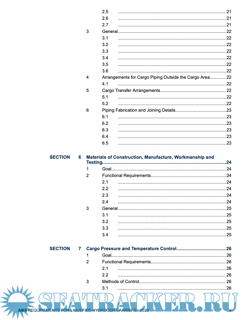 Year: 2023 Language: english Author: ABS Genre: Guide Publisher: ABS Edition: 1 Format: PDF Quality: eBook Pages count: 42 Description: There is an increased commitment from the International Maritime Organization (IMO) to reduce Green House Gas (GHG) emissions from shipping through the use of gases or low-flashpoint fuels such as hydrogen, ammonia, methane, methanol, or their e-fuel variants produced from non-fossil fuel sources. These fuels are expected to become more widely adopted by the marine industry as a substitute for conventional residual or distillate marine fuels. In response to the IMO GHG reduction targets, the marine industry has increased its interest in the use and transport of hydrogen due to its properties as a zero- emission fuel and the ability to produce hydrogen from renewable and sustainable sources. This document addresses the carriage of liquefied hydrogen in bulk. The ABS criteria to be applied to liquefied gas carriers are detailed in Part 5C, Chapter 8 of the ABS Rules for Building and Classing Marine Vessels (Marine Vessel Rules), which incorporates the IMO Resolution MSC.370(93) Amendments to the International Code for the Construction and Equipment of Ships Carrying Liquefied Gases in Bulk (IGC Code).