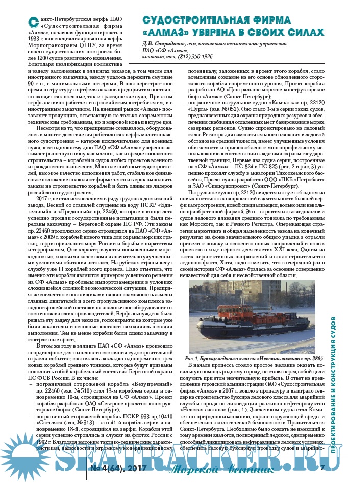 Описание: Информационные, аналитические, научно-технические и исторические статьи по морской технике и технологиям, экологической безопасности судостроения и судоходства, освоению океана и шельфа, безопасности мореплавания, истории флота и мореплаваний, морскому бизнесу и праву.