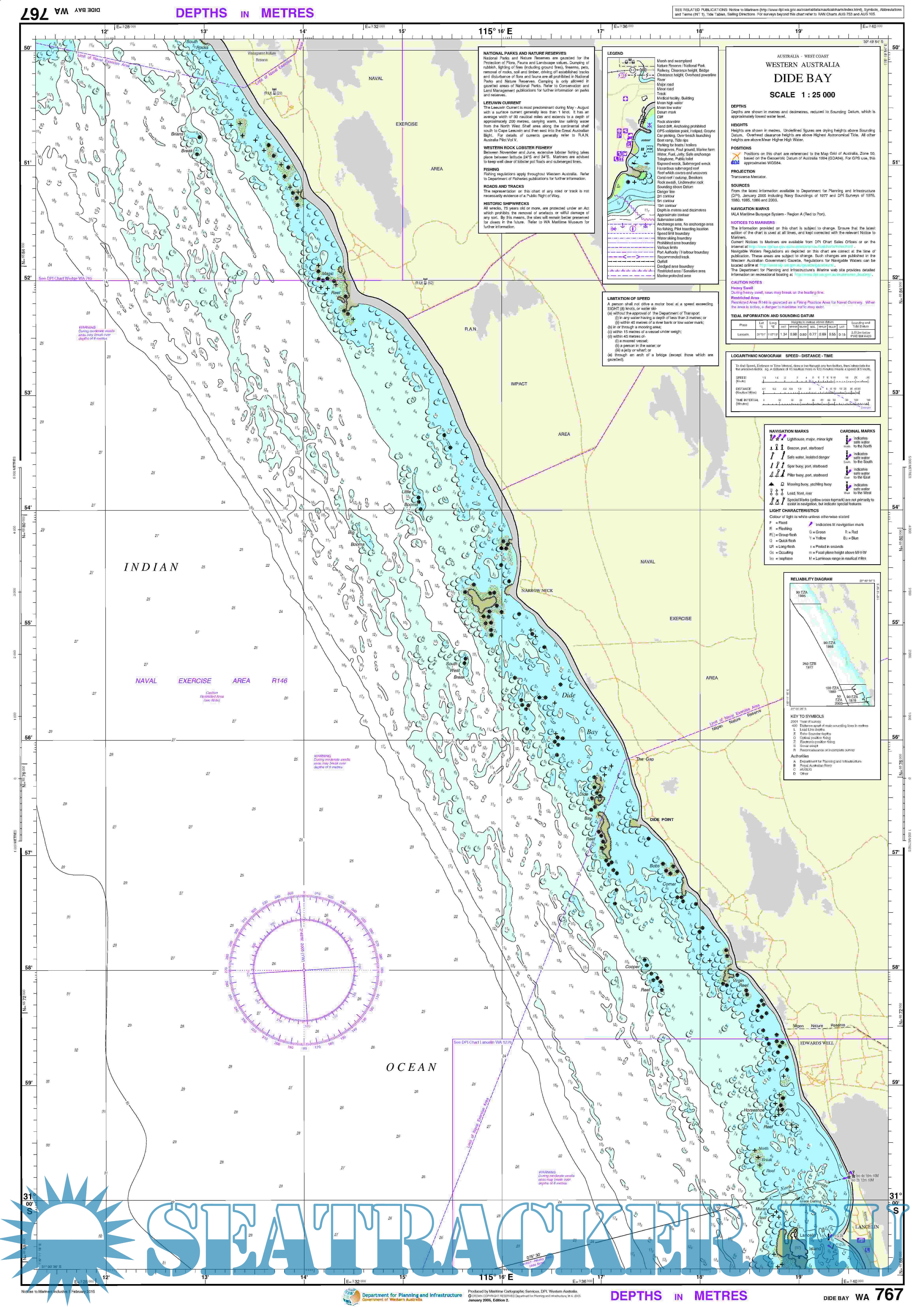 Description: Nautical Charts (PDF) and RNC (BSB) of the Western Australian coastline with latest Notices to Mariners for these charts by Department of Transport, october 2023.