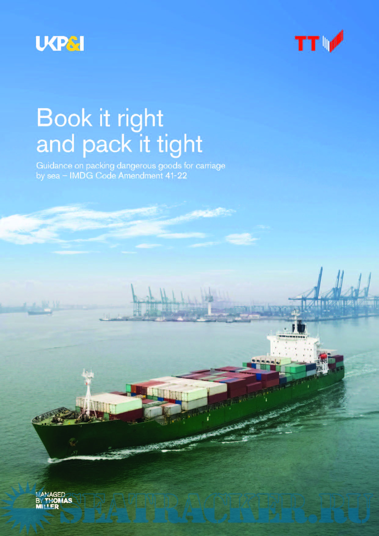 Year: 2023 Language: english Author: Thomas Miller Genre: Guide Publisher: Thomas Miller P&I Ltd Edition: September 2023 ISBN: 9780956270474 Format: PDF Quality: eBook Pages count: 108 Description: A Carefully to Carry publication An update on the “Book it right and pack it tight” publication, which reflects the mandatory application of the latest amendment to the International Maritime Dangerous Goods (IMDG) Code from 1 January 2024. This guide is intended to support shippers, forwarders, shipping line booking staff and those who pack dangerous goods into cargo transport units for carriage by sea in the technical aspects of the IMDG Code. This edition reflects the position in the IMDG Code Amendment 41-22 which is mandatory from1January 2024 and follows all the steps required when booking and packing a consignment of dangerous goods with a shipping line. Jointly published by: Thomas Miller P&I Ltd & Through Transport Mutual Services (UK) Ltd Acknowledgements UK P&I Club and TT Club