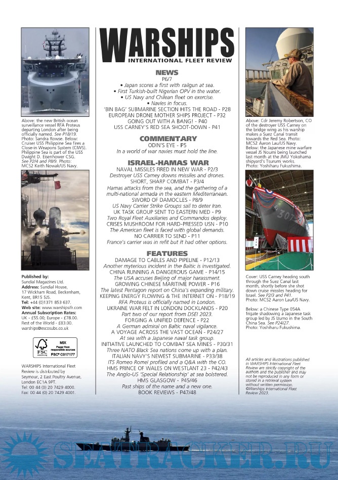 Year: 2023 Language: english Author: Iain Ballantyne (Editor) Genre: Periodical (magazine) Edition: 2023-12 Format: PDF Quality: eBook Pages count: 52 Description: Warships IFR puts the spotlight on the latest developments in the world’s navies. It covers current defence issues and has comments by leading analysts. The magazine regularly includes features on the Royal Navy and the US Navy in addition to incorporating news and features on all other navies across the globe. Warships IFR frequently carries in-depth articles on naval heritage.WARSHIPS International Fleet Review is published 12 times a year by Tandy Media Ltd who also publish Shipping Today & Yesterday (which provides news and features from the world of merchant shipping).