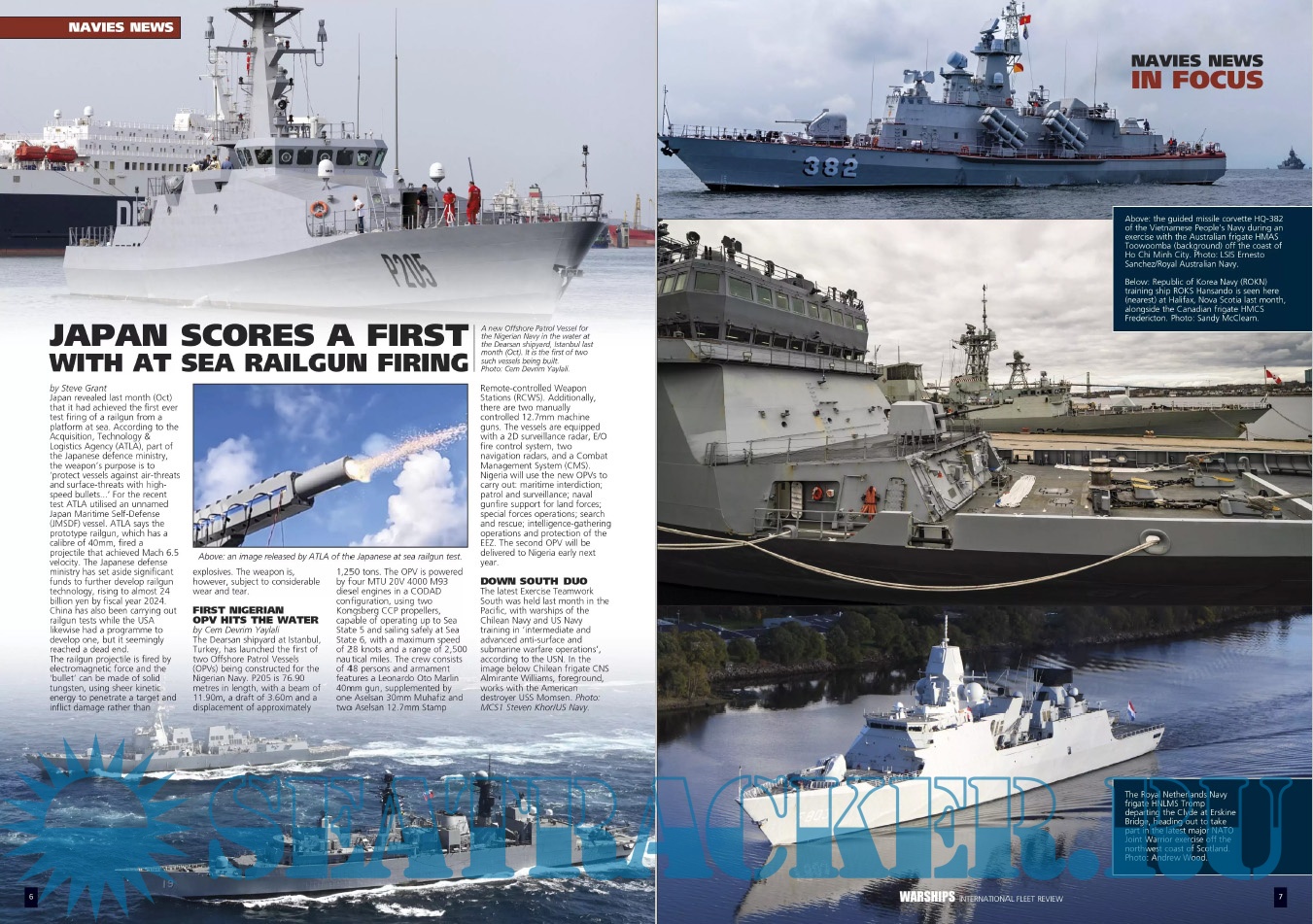 Description: Warships IFR puts the spotlight on the latest developments in the world’s navies. It covers current defence issues and has comments by leading analysts. The magazine regularly includes features on the Royal Navy and the US Navy in addition to incorporating news and features on all other navies across the globe. Warships IFR frequently carries in-depth articles on naval heritage.WARSHIPS International Fleet Review is published 12 times a year by Tandy Media Ltd who also publish Shipping Today & Yesterday (which provides news and features from the world of merchant shipping).