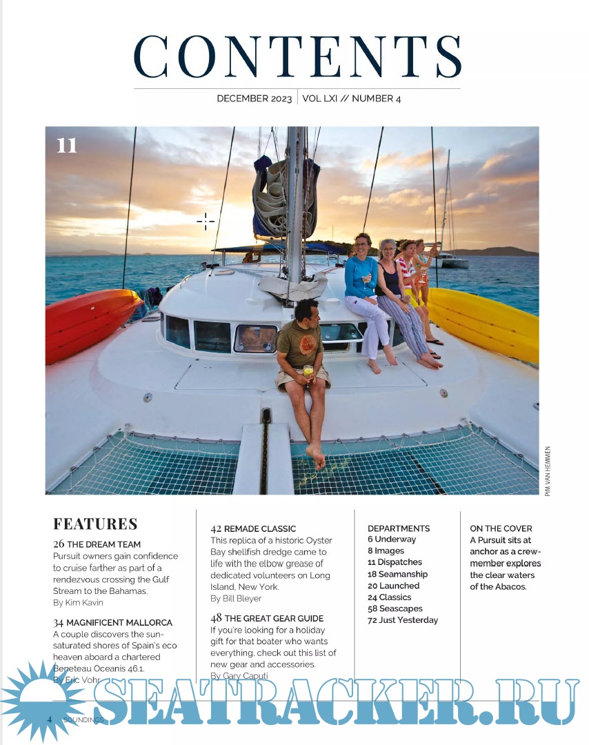 Year: 2023 Language: English Editor: Jeanne Graig Genre: Periodical (magazine) Publisher: Active Interest Media Edition: December 2023 Format: PDF Quality: eBook Pages count: 76 Description: Soundings is the news and feature publication for pleasure boaters.Soundings Magazine entertains and informs a loyal audience of passionate boaters. Our award-winning coverage is designed to inspire and educate our engaged owner/operator audience on the latest developments in boating, while also exploring the heritage, history and passion for our pastime that serious enthusiasts share. SOUNDINGS continues to uphold the highest standards of journalism in all our print and digital offerings.